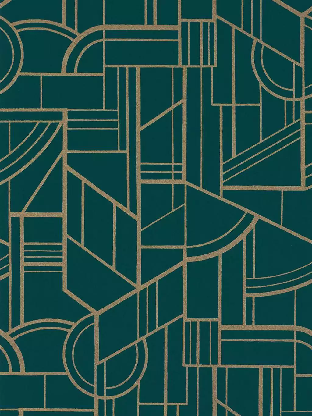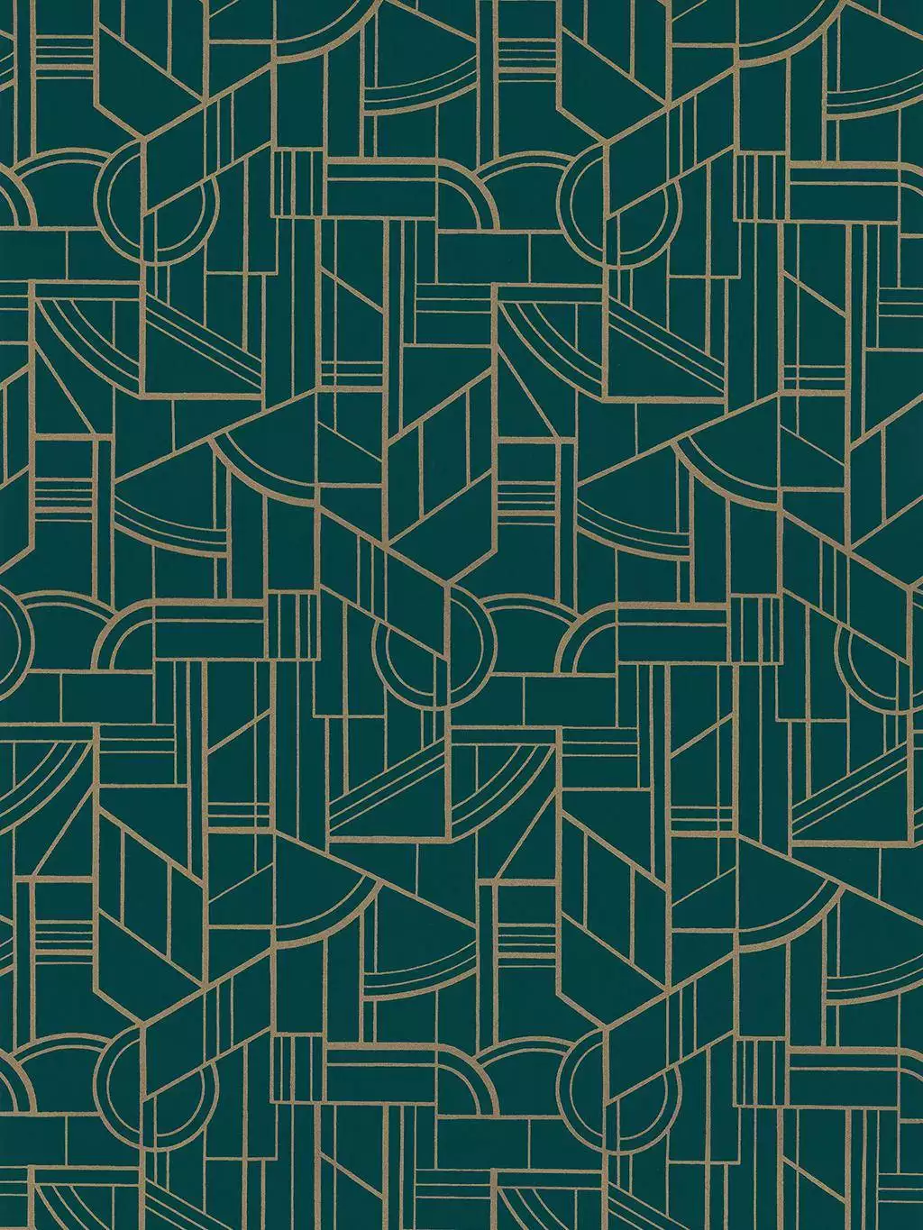 Die Cinetique col. 06 aus der Kollektion „Faubourg des Lumières" von Casamance ist eine Vliestapete mit einem geometrisch-kinetischen Art-Déco-Muster in Gold und Grün. Die sich wiederholenden grafischen Formen erzeugen eine optische Bewegung – der Goldton reflektiert das Licht und lässt das Muster je nach Tageszeit unterschiedlich wirken.