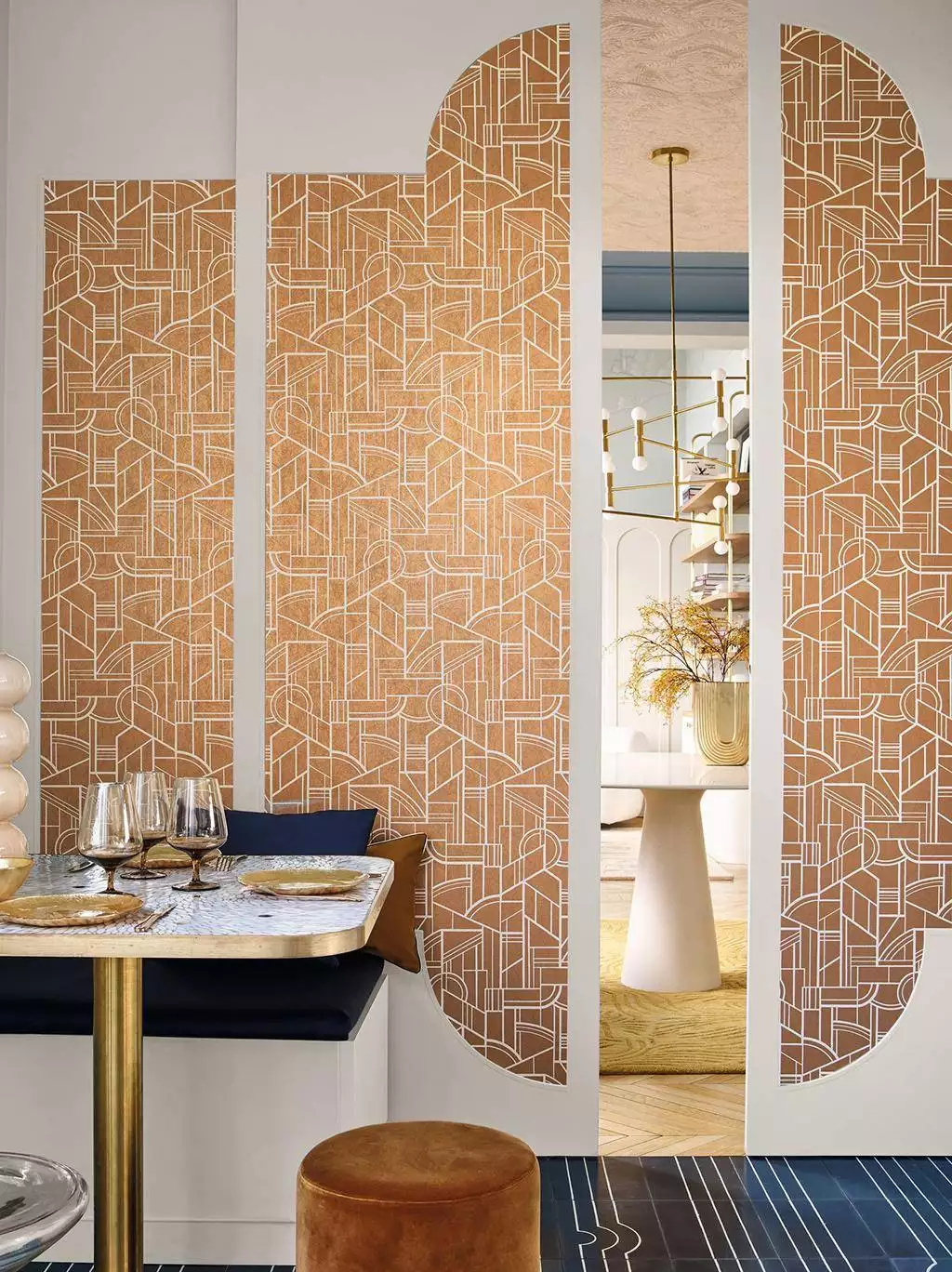 Als Rapport bezeichnet man das wiederkehrende Muster einer Tapete.