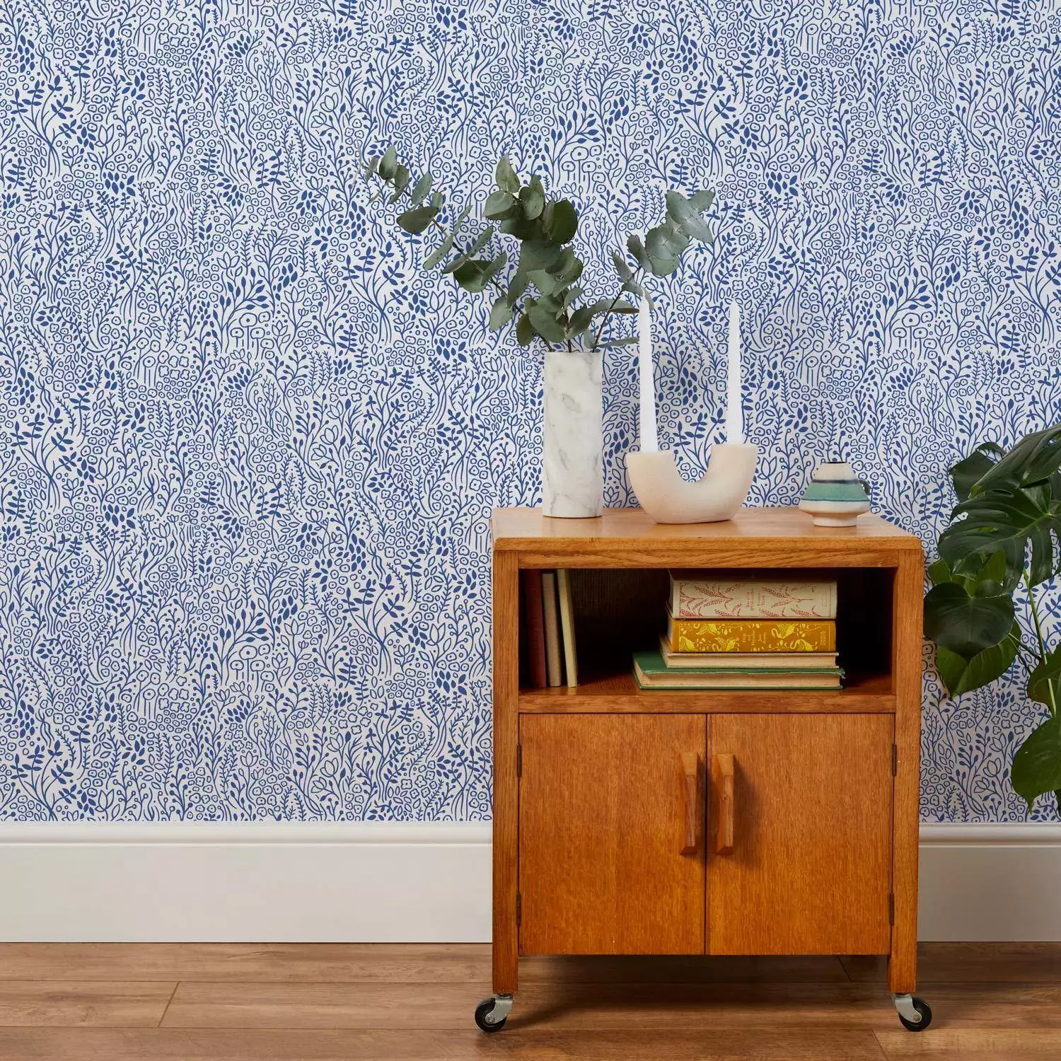 Die Tapete Coastal Meadow von Bold & Noble zeigt ein filigranes, handgezeichnetes Muster aus kobaltblauen Blüten, Blättern, Ähren und Gräsern auf weißem Hintergrund. Die dichte, organische Gestaltung erinnert an eine blühende Küstenwiese im Sommer und verleiht dem Raum eine ruhige und naturnahe Atmosphäre. Das verspielte, aber dennoch elegante Design bringt Struktur an die Wand, ohne aufdringlich zu wirken. Ideal für Akzentwände oder um einem Raum ein frisches, maritimes Flair zu verleihen. Handgezeichnet im Bold & Noble Studio in Hertfordshire und gedruckt in Lancashire in einer der letzten noch existierenden Tapetenfabriken Großbritanniens. Diese Qualitätstapete wird mit Farben auf Wasserbasis auf flammhemmendes PEFC-Papier gedruckt.