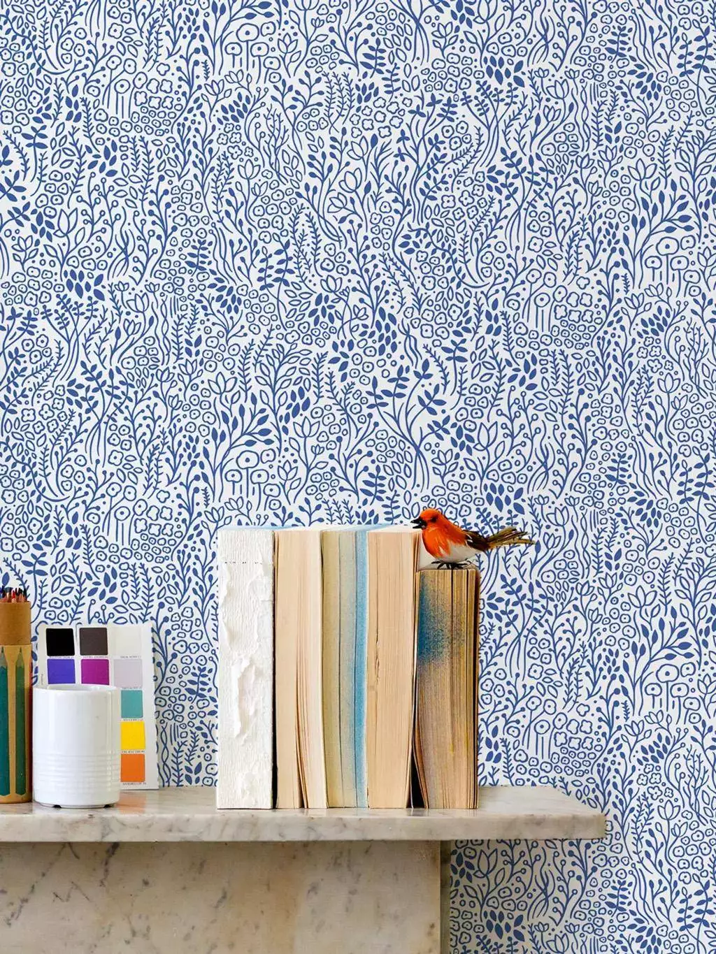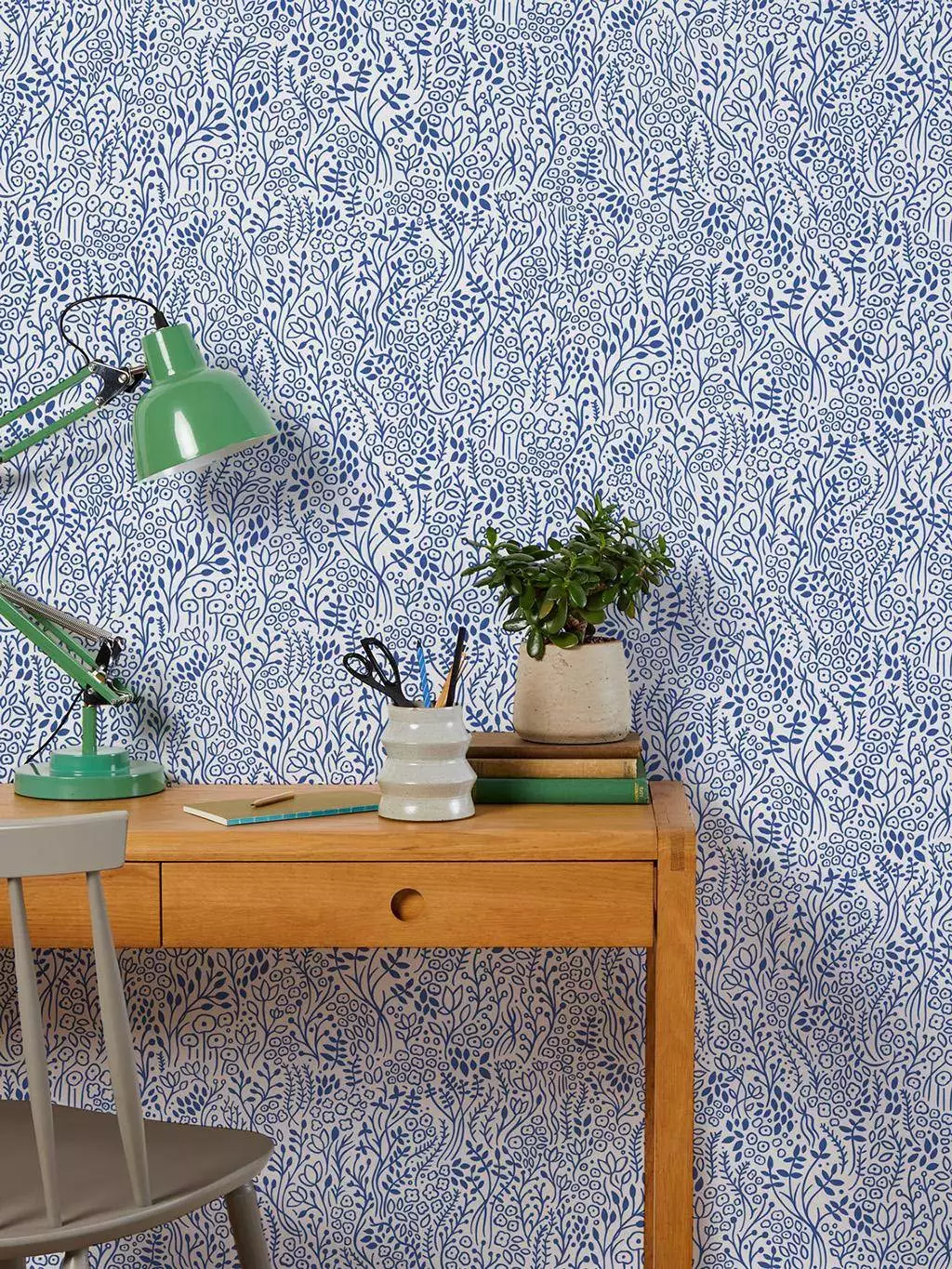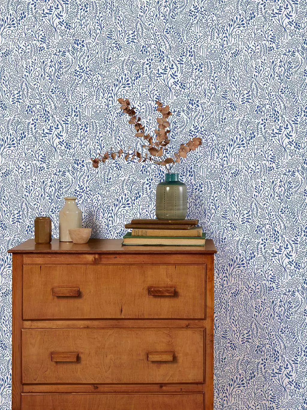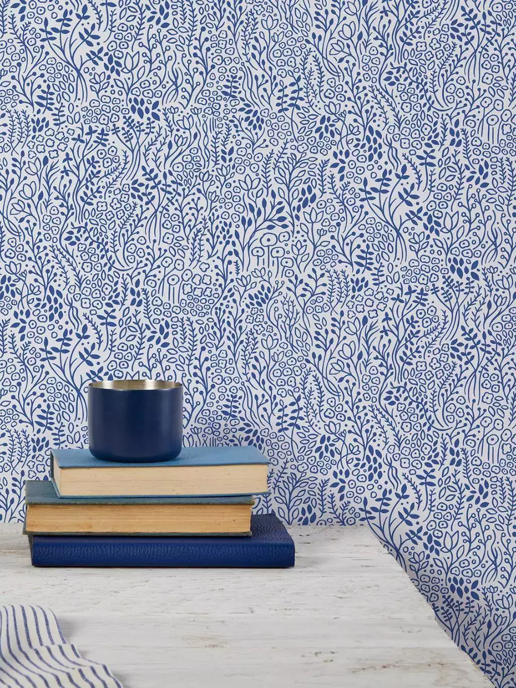 Die Tapete Coastal Meadow von Bold & Noble zeigt ein filigranes, handgezeichnetes Muster aus kobaltblauen Blüten, Blättern, Ähren und Gräsern auf weißem Hintergrund. Die dichte, organische Gestaltung erinnert an eine blühende Küstenwiese im Sommer und verleiht dem Raum eine ruhige und naturnahe Atmosphäre. Das verspielte, aber dennoch elegante Design bringt Struktur an die Wand, ohne aufdringlich zu wirken. Ideal für Akzentwände oder um einem Raum ein frisches, maritimes Flair zu verleihen. Handgezeichnet im Bold & Noble Studio in Hertfordshire und gedruckt in Lancashire in einer der letzten noch existierenden Tapetenfabriken Großbritanniens. Diese Qualitätstapete wird mit Farben auf Wasserbasis auf flammhemmendes PEFC-Papier gedruckt.