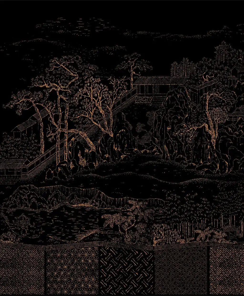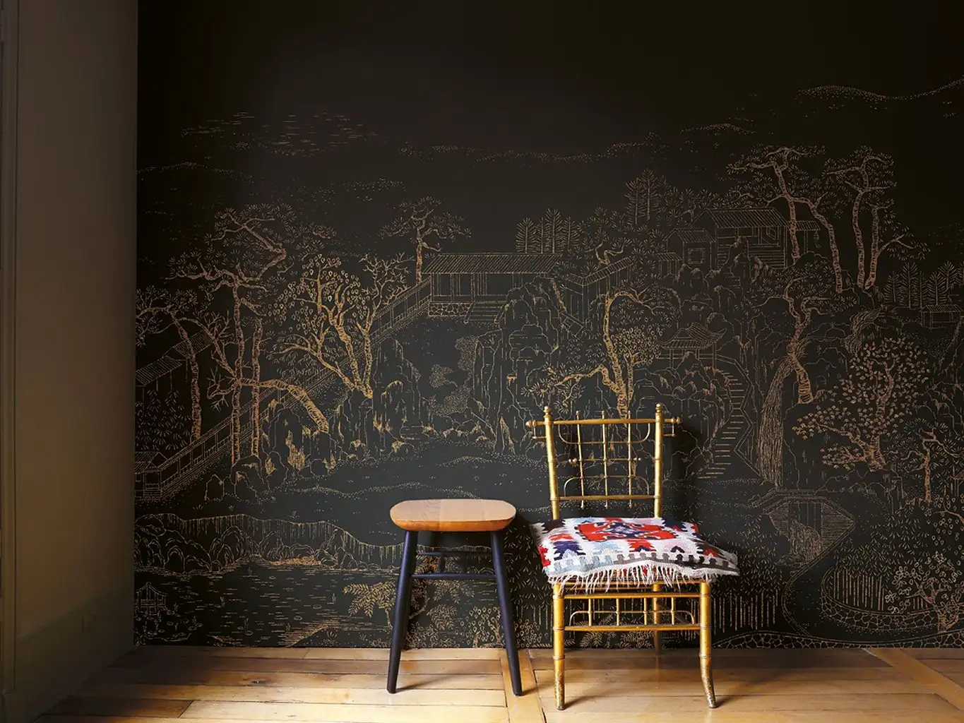 • Großformatige Muster, warme Farben und dezente Metallic-Effekte, die Tiefe und Eleganz schaffen