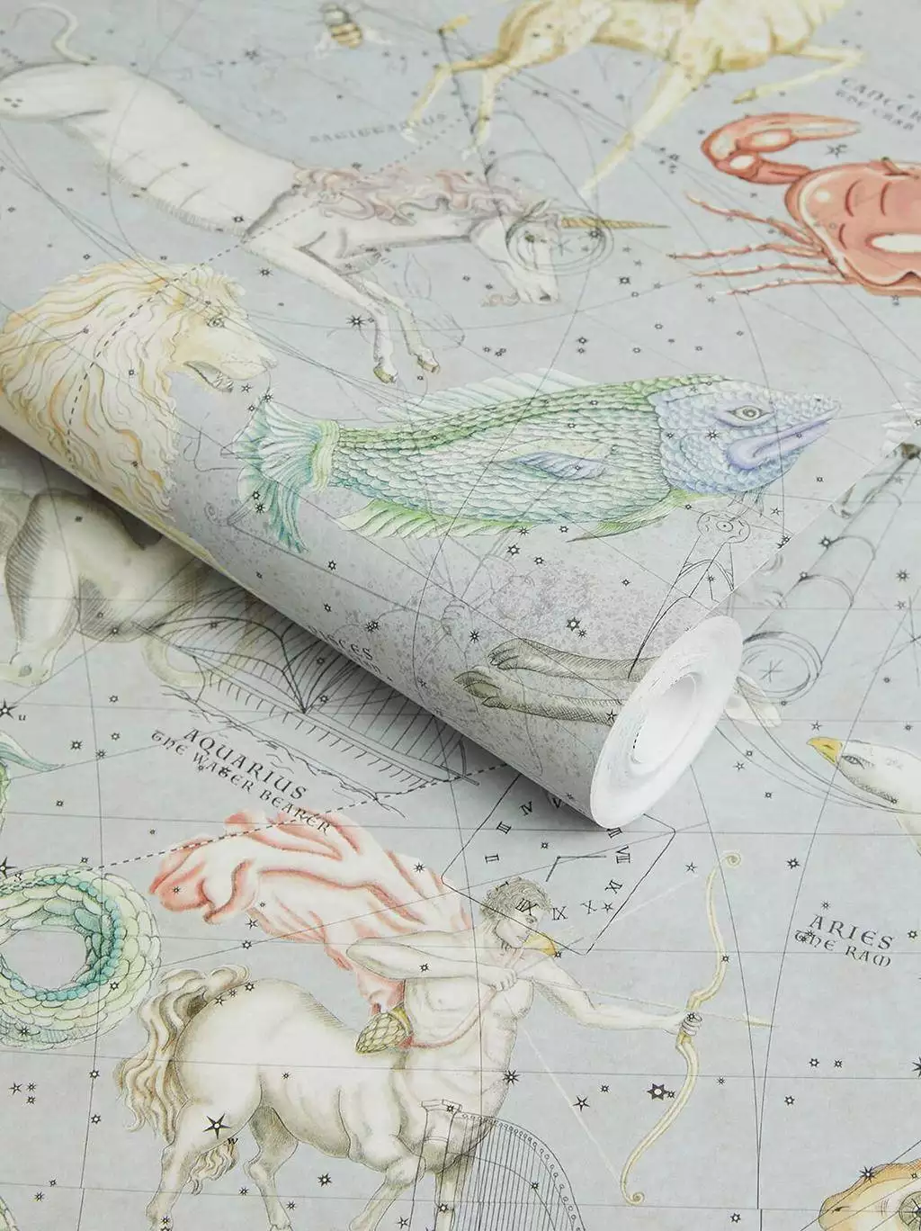 Die Design-Tapete Cosmos von House of Hackney haucht Räumen auf einzigartige Weise kosmisches Leben ein. Inspiriert von antiken Sternkarten zeigt sie die zwölf Tierkreiszeichen, dazu Sternbilder wie Pegasus, Canis Major und Ursa Minor – fein illustriert und voller Symbolkraft. Die matte Vliestapete wird im praktischen Set aus 4 Bahnen (je 0,45 x 3,00 m) geliefert. Sets lassen sich nahtlos erweitern, wodurch die Wandgestaltung einfach und präzise gelingt. Ob als luxuriöse Sternzeichen-Tapete im Wohnzimmer oder als stilvoller Akzent im Schlafzimmer – Cosmos Celestial Blue bringt einen Zauber wie aus dem Jenseits in Ihr Interieur.