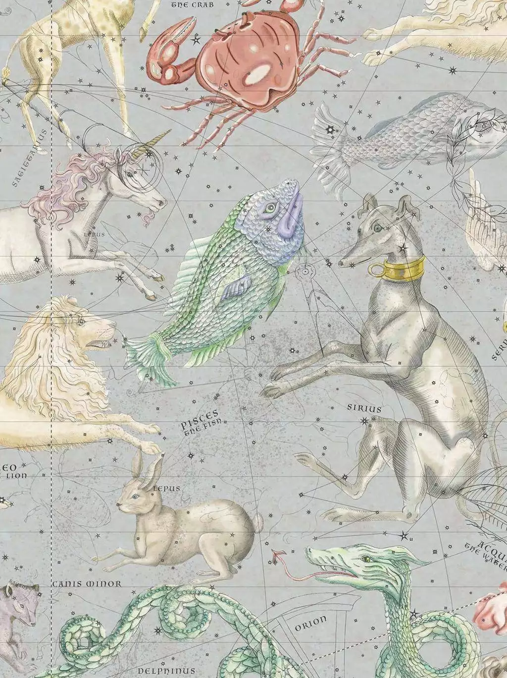 Die Design-Tapete Cosmos von House of Hackney haucht Räumen auf einzigartige Weise kosmisches Leben ein. Inspiriert von antiken Sternkarten zeigt sie die zwölf Tierkreiszeichen, dazu Sternbilder wie Pegasus, Canis Major und Ursa Minor – fein illustriert und voller Symbolkraft. Die matte Vliestapete wird im praktischen Set aus 4 Bahnen (je 0,45 x 3,00 m) geliefert. Sets lassen sich nahtlos erweitern, wodurch die Wandgestaltung einfach und präzise gelingt. Ob als luxuriöse Sternzeichen-Tapete im Wohnzimmer oder als stilvoller Akzent im Schlafzimmer – Cosmos Celestial Blue bringt einen Zauber wie aus dem Jenseits in Ihr Interieur.
