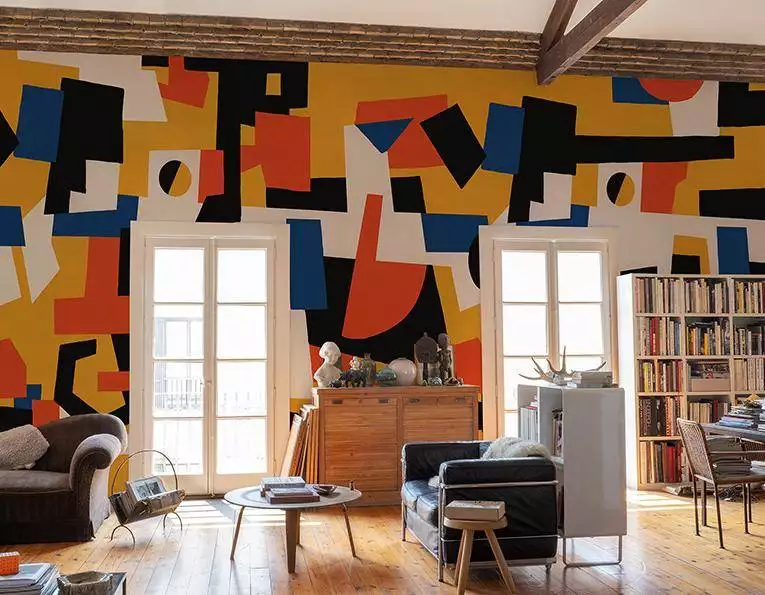 Die Tapete Cubic experience von Tres Tintas ist ein geometrisches Design in bunten Farbtönen aus der L'Enfant Terrible-Kollektion. Eine geometrisch ausdrucksvolle Komposition, die gute Laune macht.