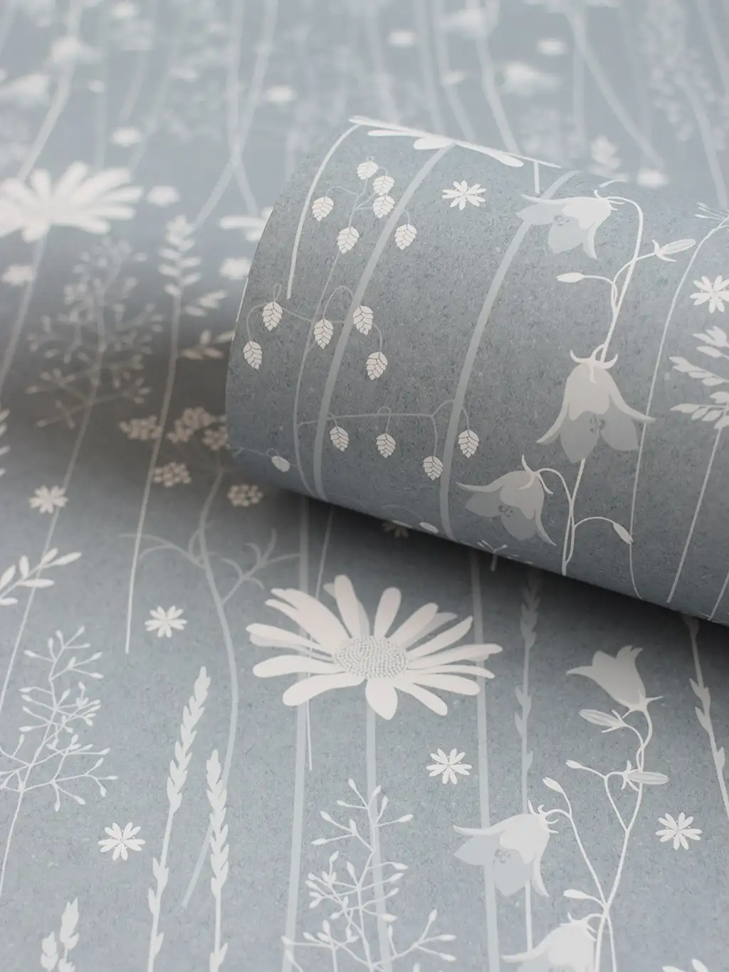Holen Sie sich den Zauber einer vor Leben strotzenden Sommerwiese nach Hause. Es ist eine belebte Wiese, aber die Wirkung ist sanft und beruhigend. Es zeigt Gänseblümchen, Glockenblumen, Hirtentäschel, Sternmiere, alle Arten von Gräsern und Schweinnüssen. Daisy Meadow wurde von einer Reise nach Norwegen im Hochsommer inspiriert. Es waren wirklich überall Blumen.