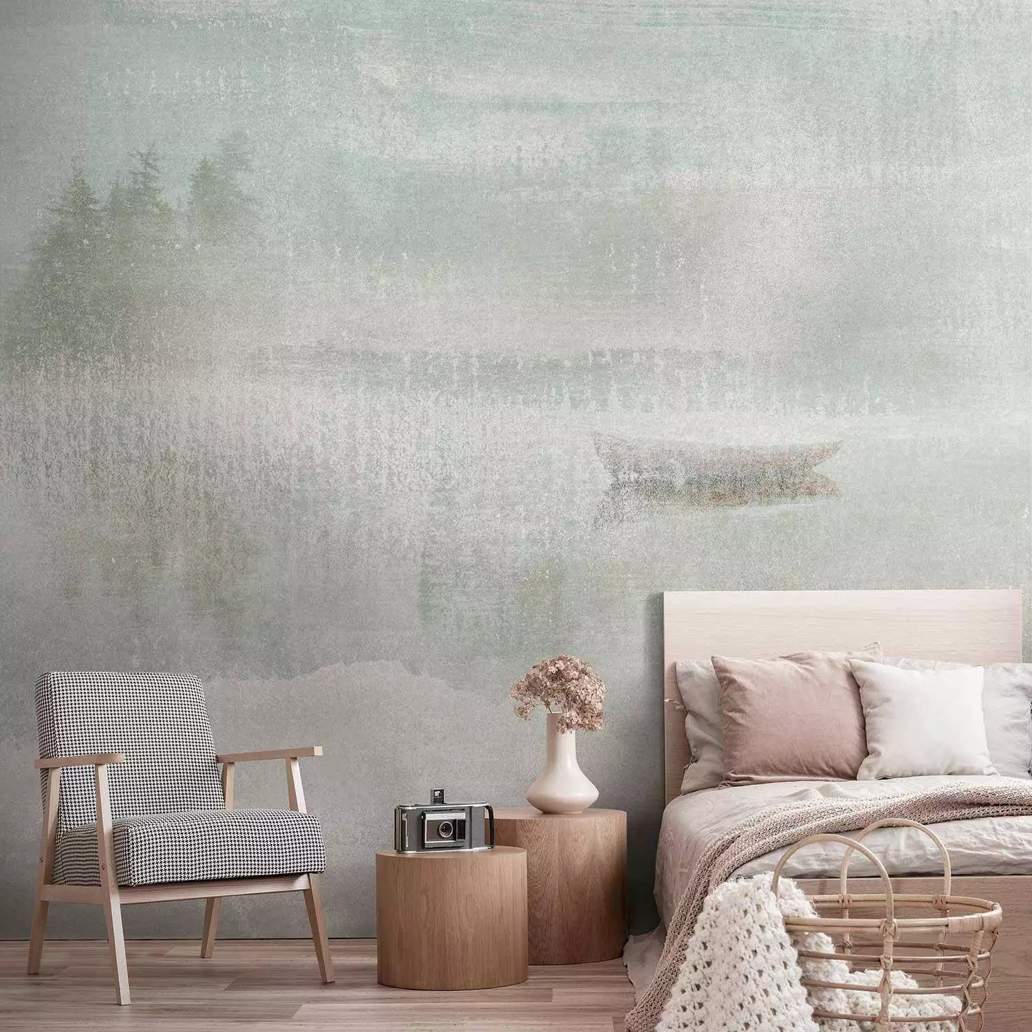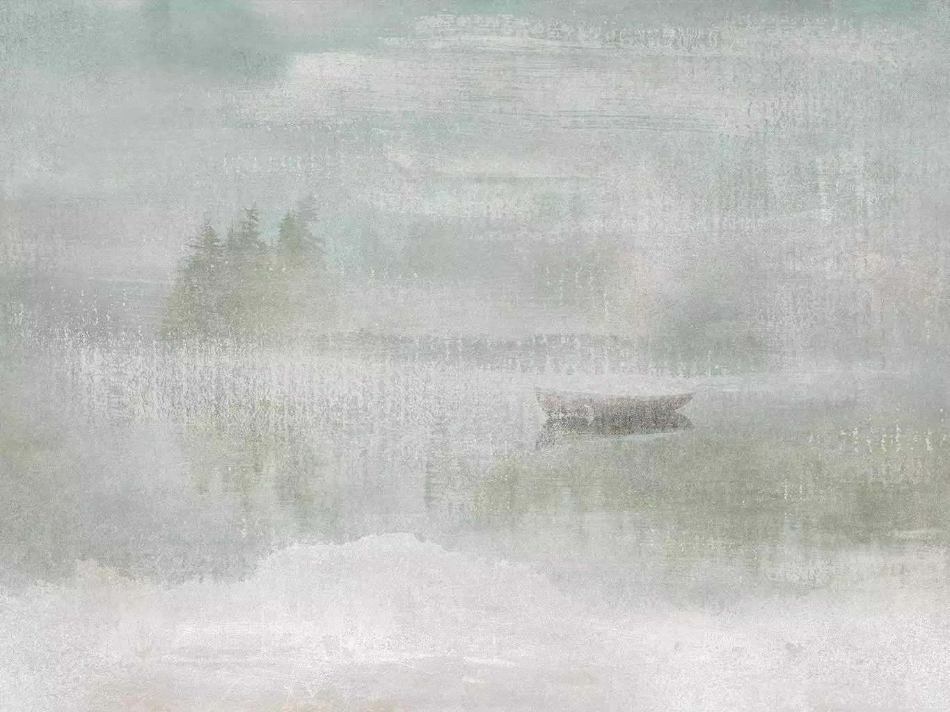 Das Motiv DELTA GREEN von Tecnografica ist eine ruhige, atmosphärische Komposition im Stil einer pudrig-abstrakten Landschaft. Weiche Pinselstrukturen, zarte Grüntöne und ein Hauch Nebel erzeugen eine fast meditative Stimmung. Im Zentrum ruht ein kleines Boot auf glattem Wasser – reduziert, poetisch, beinahe träumerisch. Der Effekt ist subtil und modern zugleich – ideal für Räume mit Ruhe und Leichtigkeit. Das Motiv ist in Größe und Proportion vollständig anpassbar – ideal für individuelle Raumlösungen. Ein zeitloser, kunstvoller Ruhepol.