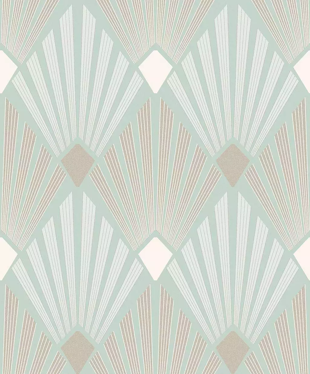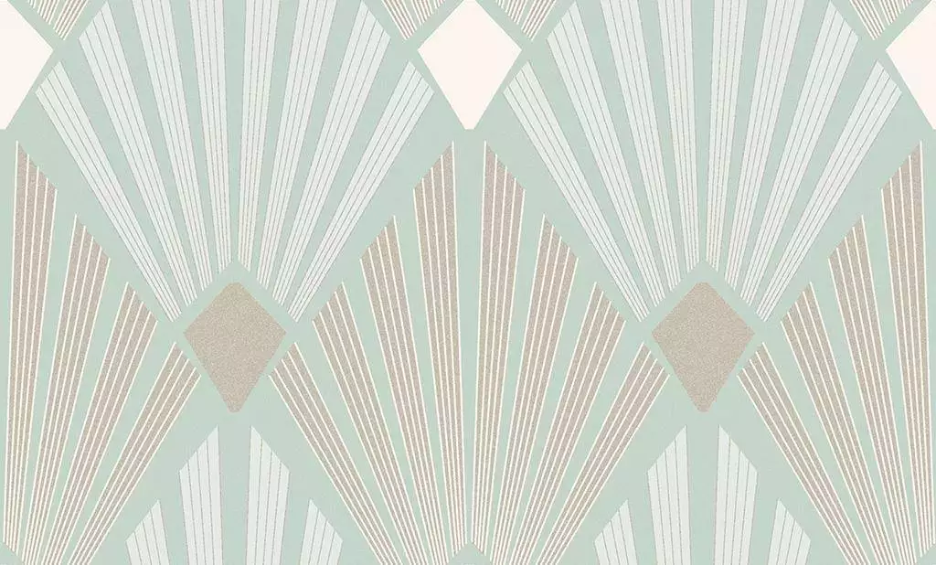 Die Tapete Diego Jade vereint Art-Deco-Eleganz mit sanfter Frische. Das Fächermotiv in zarten Jade- und Sandtönen strahlt Leichtigkeit aus und verleiht dem Raum zugleich klare Struktur. Ein Design, das historische Raffinesse mit moderner Ruhe verbindet.