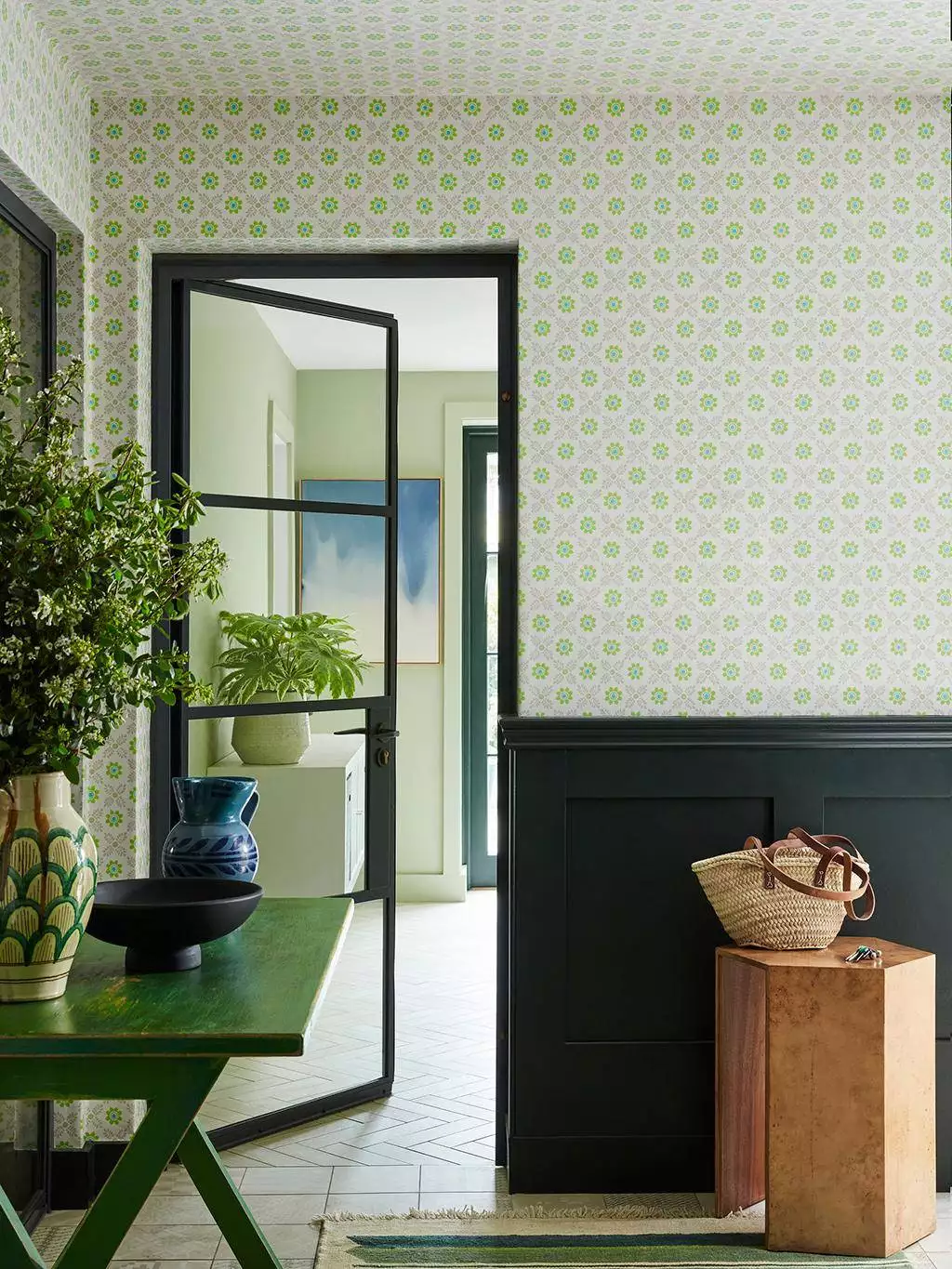 Die florale Design-Tapete Ditsy Block, Phthalo hat eine überraschende Herkunft: Sie wurde im Dachgeschoss von Felbrigg Hall in Norfolk entdeckt, fernab repräsentativer Räume. Das feine Blütenmuster wirkt leicht und rhythmisch, fast tänzerisch. Die Farbgebung kombiniert kühles Phthalo-Grün mit klaren Blauakzenten und weichen Naturtönen, frisch, luftig, ruhig. Die kleinen Blüten leuchten punktuell, das zarte Blattwerk gibt der Fläche sanft Struktur, und am oberen Rand greift eine gemalte Flechtung das Motiv von klassischem Damast auf. So verbindet das Design Leichtigkeit mit einer Prise historischen Bezugs. Dank des Oberflächendruckverfahrens bleibt die handwerkliche Qualität sichtbar. Füllen Sie Ihren Raum mit einer klaren, frischen Atmosphäre. Hell, leise und mit belebender Energie.