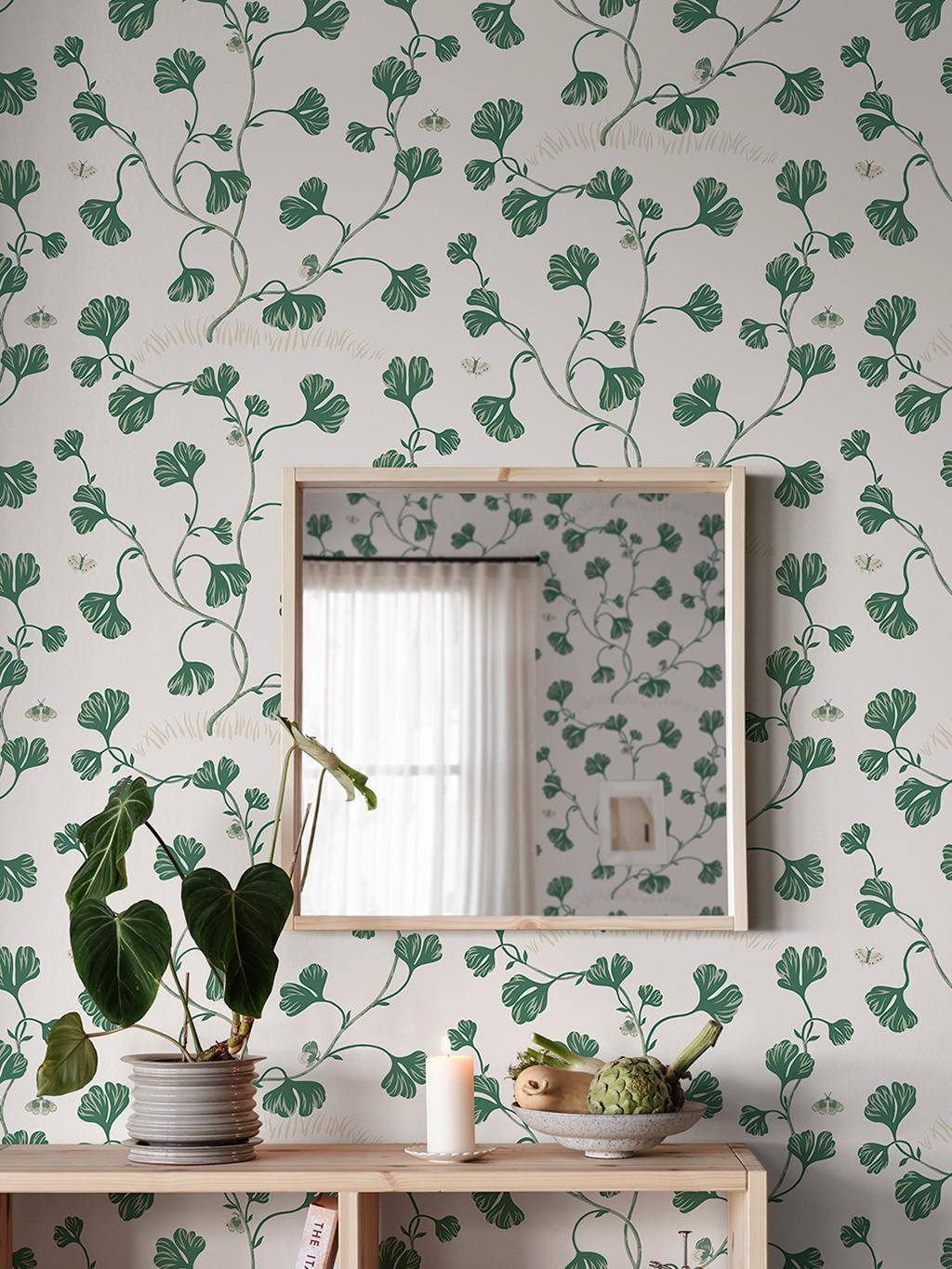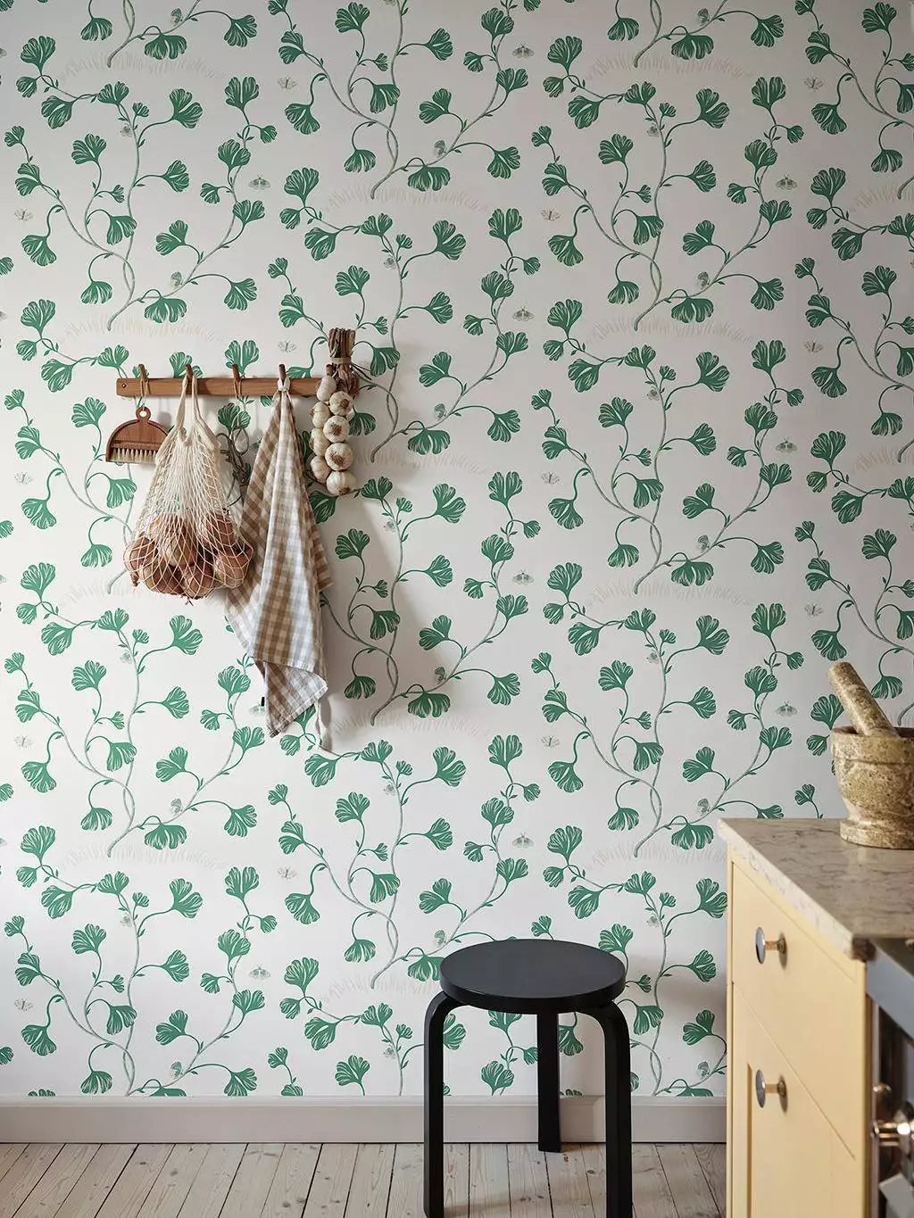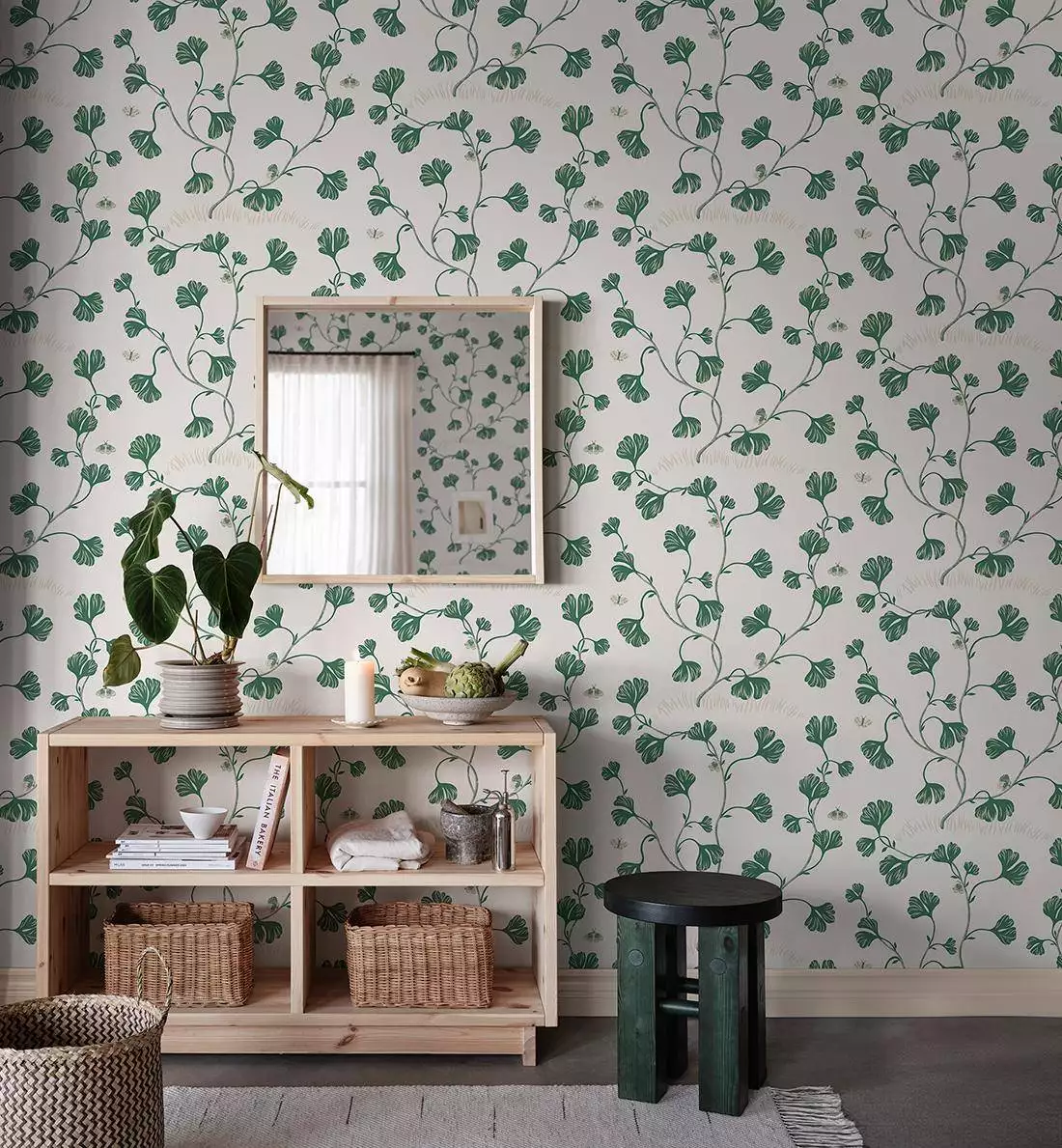Die Tapete Ebba lässt Ginkgoblätter an fein geschwungenen Zweigen über die Wand wachsen, leicht und fast schwebend. Der Ginkgo steht für Beständigkeit, Balance und leise Verbundenheit. Genau diese Stimmung trägt das Muster in den Raum. Als botanische Vliestapete wirkt Ebba ruhig, zeitlos und ein kleines bisschen poetisch. Wir lieben sie für ihre sanfte Bewegung, ihre Symbolik und die natürliche Eleganz, mit der sie Räume veredelt. Die Kollektion Familjen fängt die Wärme, Spontaneität und den Charakter eines mit Liebe gefüllten Hauses ein. So wie eine Familie aus vielen verschiedenen Persönlichkeiten und Wünschen besteht, bietet diese Kollektion eine vielfältige Auswahl an Designs, die sich harmonisch ergänzen.