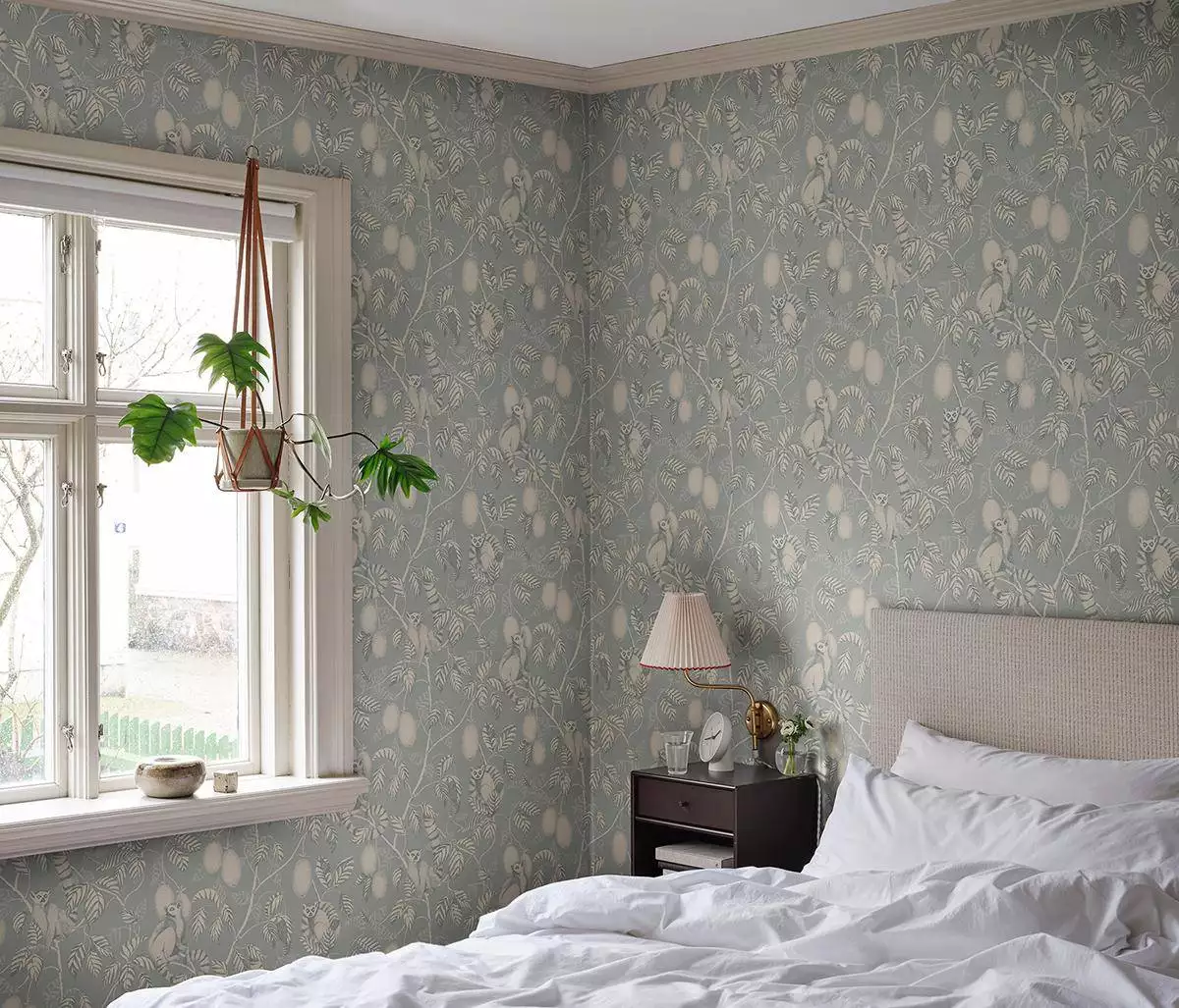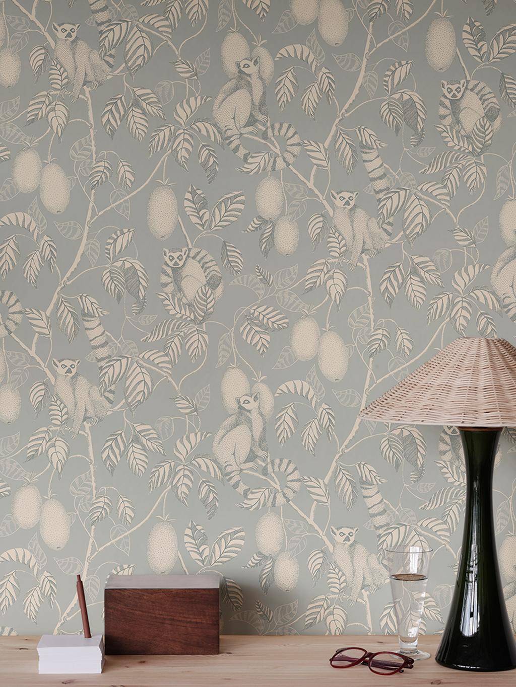 Die zauberhafte Tapete Elliot in Light Blue entfaltet ihre Wirkung auf den zweiten Blick. Wir lieben es, wie zwischen feinem Laub und zarten Früchten zarte Lemuren ruhen, als hätten sie sich in das Muster zurückgezogen. Der kreidige Blauton gibt dem detailreichen Motiv Luft und Leichtigkeit. Der Raum darf offen und ruhig wirken. Diese Tapete schafft es, nicht verspielt, sondern eher ausgewogen und fein illustriert zu wirken. Elliot bringt Natur, Fantasie und skandinavische Zurückhaltung in eine Balance, die Ihre Wand lebendig macht mit einem Feinsinn, die uns begeistert.