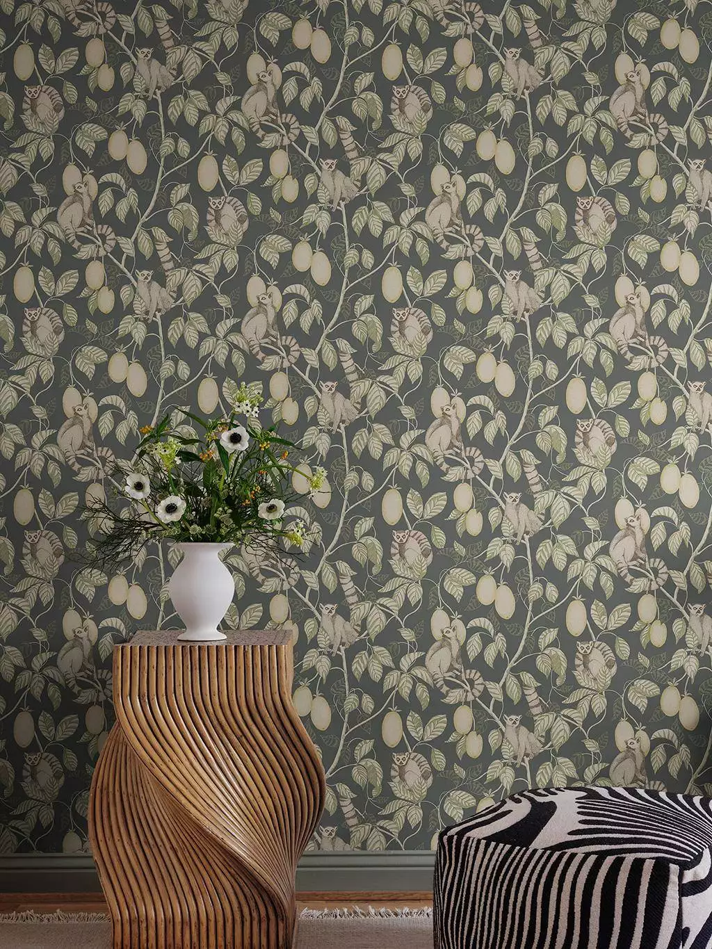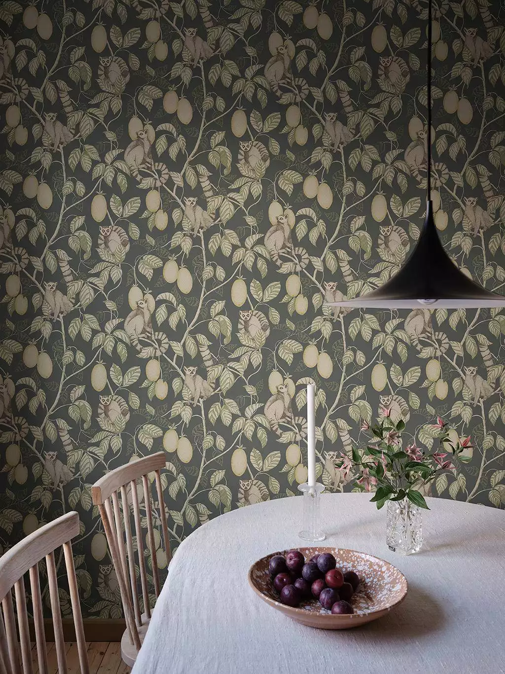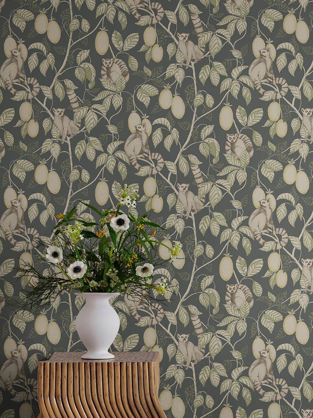 Die Tapete Elliot Dark Blue zeigt eine stille, fast erzählerische Seite exotischer Tapeten. Zwischen dichtem Blattwerk zeigen sich neugierige Lemuren, vorsichtig und als Teil des Ganzen. Das rauchige Blau des Hintergrunds wirkt tief und ruhig und gibt dem Raum Profil. Als hochwertige Vliestapete von Sandberg verbindet Elliot Naturmotiv und skandinavische Zurückhaltung zu lebendiger Wohnlichkeit.