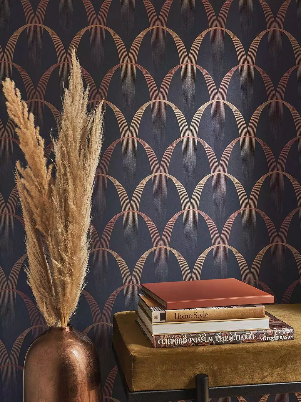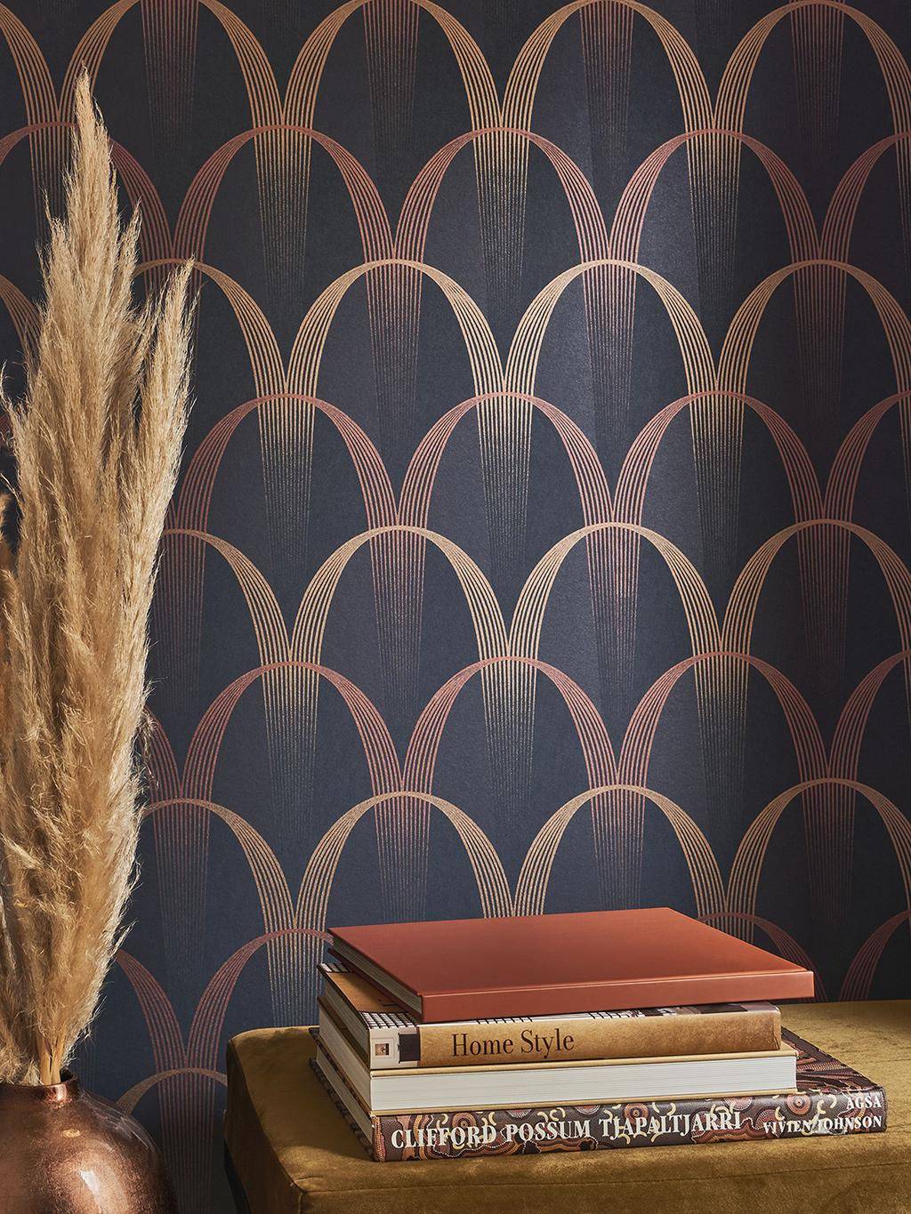 Die Tapete Shimmy bringt die Wände zum Wackeln – ganz im Stil der 20er Jahre. Der beliebte Tanz Shimmy war damales bekannt für seine wirbelnden, drehenden Bewegungen. Die gleichnamige Tapete greift diesen Rhythmus auf und verwandelt ihn in ein grafisches Spiel aus schwungvoll verschlungenen Linien – bewegt, präzise und voller Energie.