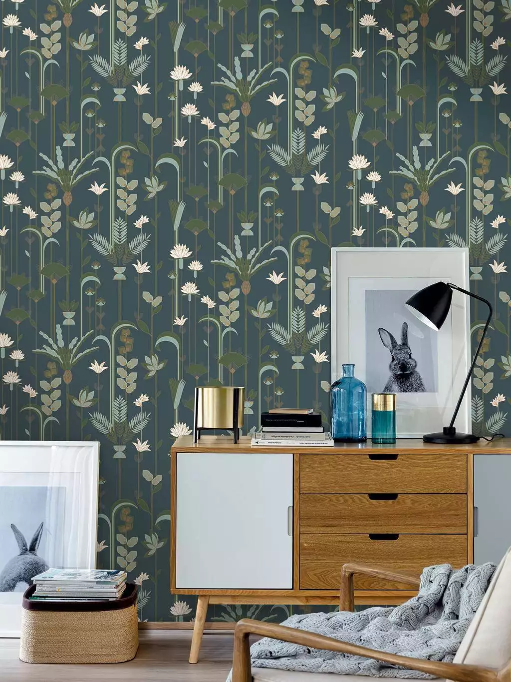 Auf dunklem Petrol zeigt die Tapete Ephemeral ein quirliges botanisches Durcheinander – schlanke Stängel, grafische Blüten, ein Hauch Art Déco dazwischen. Das Design wirkt, als hätte ein Träumer einen nächtlichen Garten skizziert, natürlich und ungeordnet. Diese Tapete gibt dem Raum eine organische Energie. Die Serie Ephemeral ist wohnlich, ein bisschen verspielt und erstaunlich elegant und spiegelt, wie wertvoll und vergänglich jeder schöne Moment der Natur ist.
