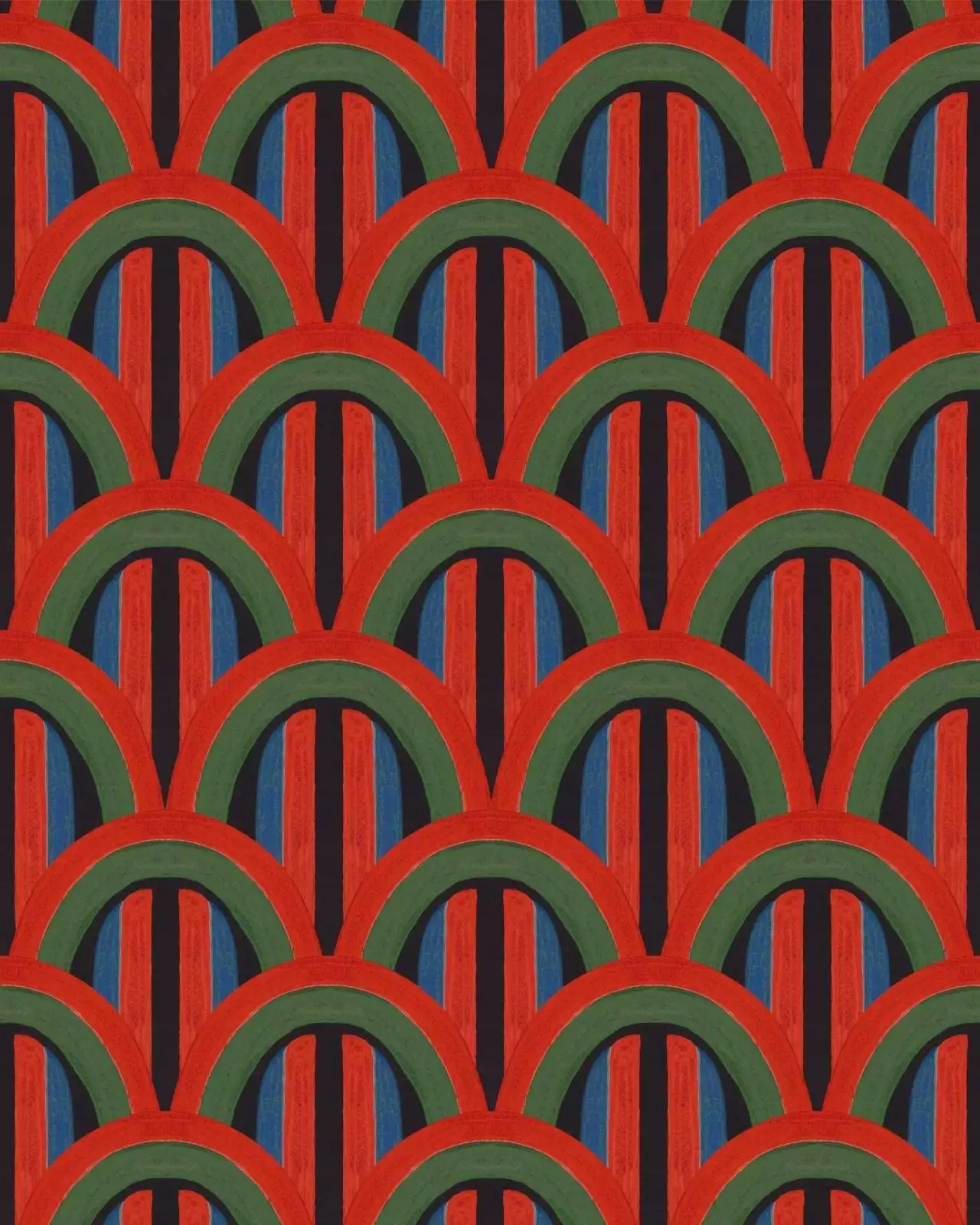 Eine bezaubernde Tapete mit lebhaften geometrischen Mustern, die sich immer wiederholen und an glitzernde Meereswellen erinnern. Hier steht die Entspannung im Mittelpunkt und schafft ein fröhliches Ambiente, das jeden Raum mühelos aufwertet. Neben diesen von der Küste inspirierten Motiven bietet ESTIVO auch ein abstraktes Muster, das Erinnerungen an Regenbögen aus der Kindheit weckt, vor einem ruhigen blauen Hintergrund im trendigen Retro-Stil. Diese Verschmelzung von Elementen fügt eine zusätzliche Schicht von Laune und Nostalgie hinzu, die den Reiz Ihrer Innenräume mit dynamischer Energie und zeitlosem Reiz verstärkt.