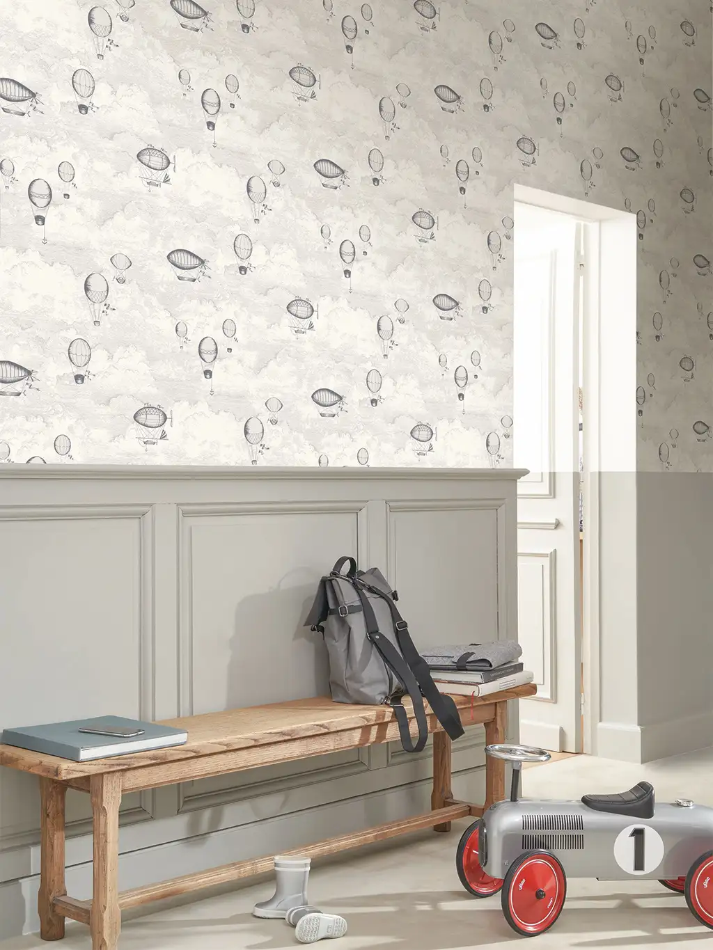 Haben Sie Lust auf ein Abenteuer in den eigenen vier Wänden? Dann ist die Tapete Expedition aus der Kollektion VOYAGE ONIRIQUE von Casadeco genau das Richtige für Sie! Die wunderschönen gezeichneten Motive von Luftschiffen und Ballons schweben an einem hellen Himmel, der durchzogen ist von filigranen Wolken.