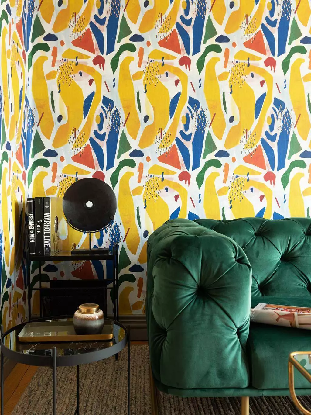 • Großformatige Muster, warme Farben und dezente Metallic-Effekte, die Tiefe und Eleganz schaffen