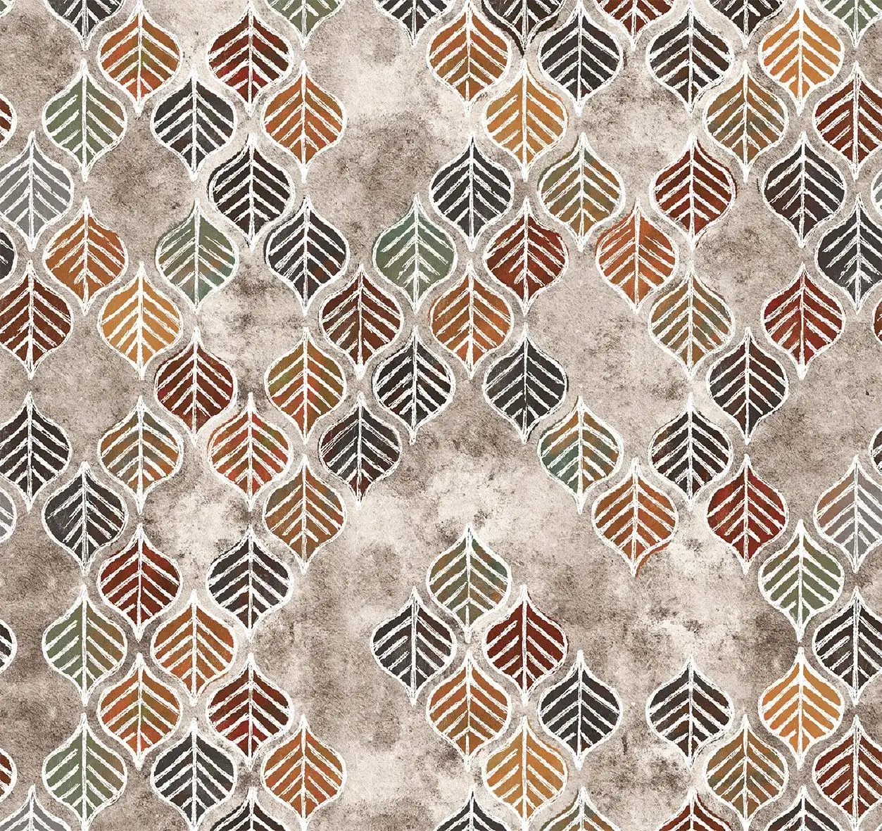 • Großformatige Muster, warme Farben und dezente Metallic-Effekte, die Tiefe und Eleganz schaffen