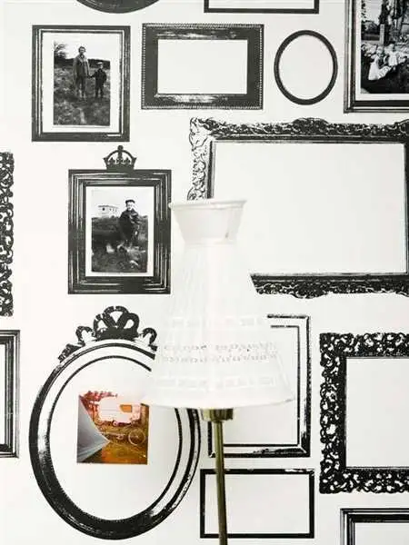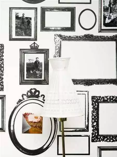 Perfekt kommt diese Tapete zur Geltung, wenn man einige der Rahmenformen mit tatsächlichen Bildern ausfüllt. So wird diese Tapete zu einen echten und individuellen Blickfang.