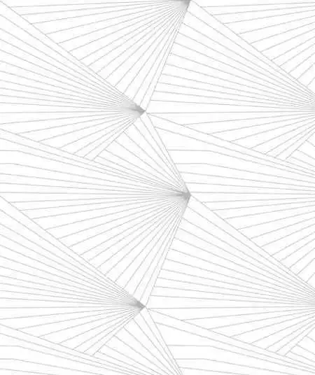 Ein modernes, grafisches Design in Grau auf Weiß. Fan besteht aus feinen Linien, die sich zu fächerartigen Formen verdichten. Das präzise Muster wirkt ruhig, klar und architektonisch.