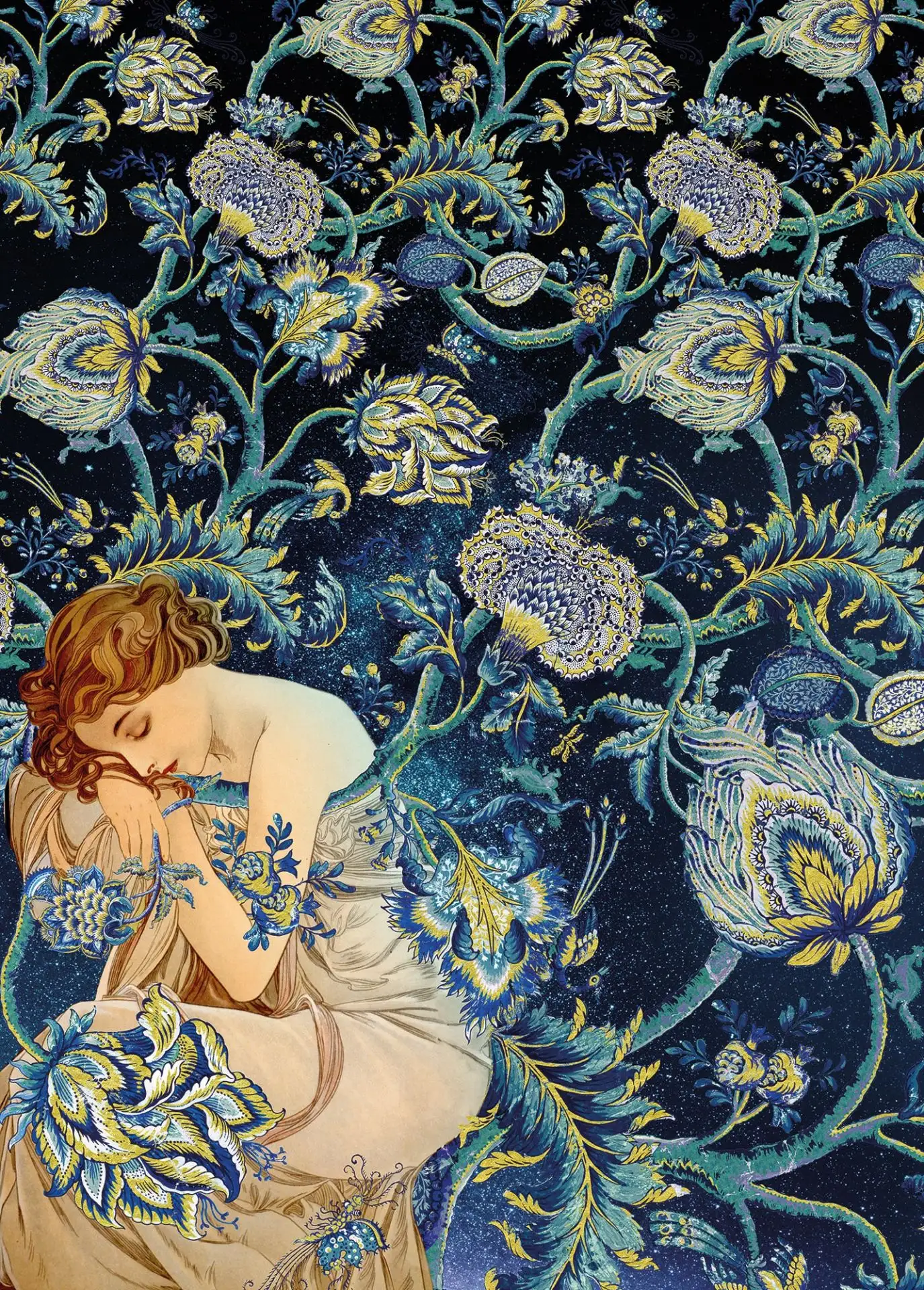 | Design: | Blumen, Figuren, Gesichter, Jugendstil |