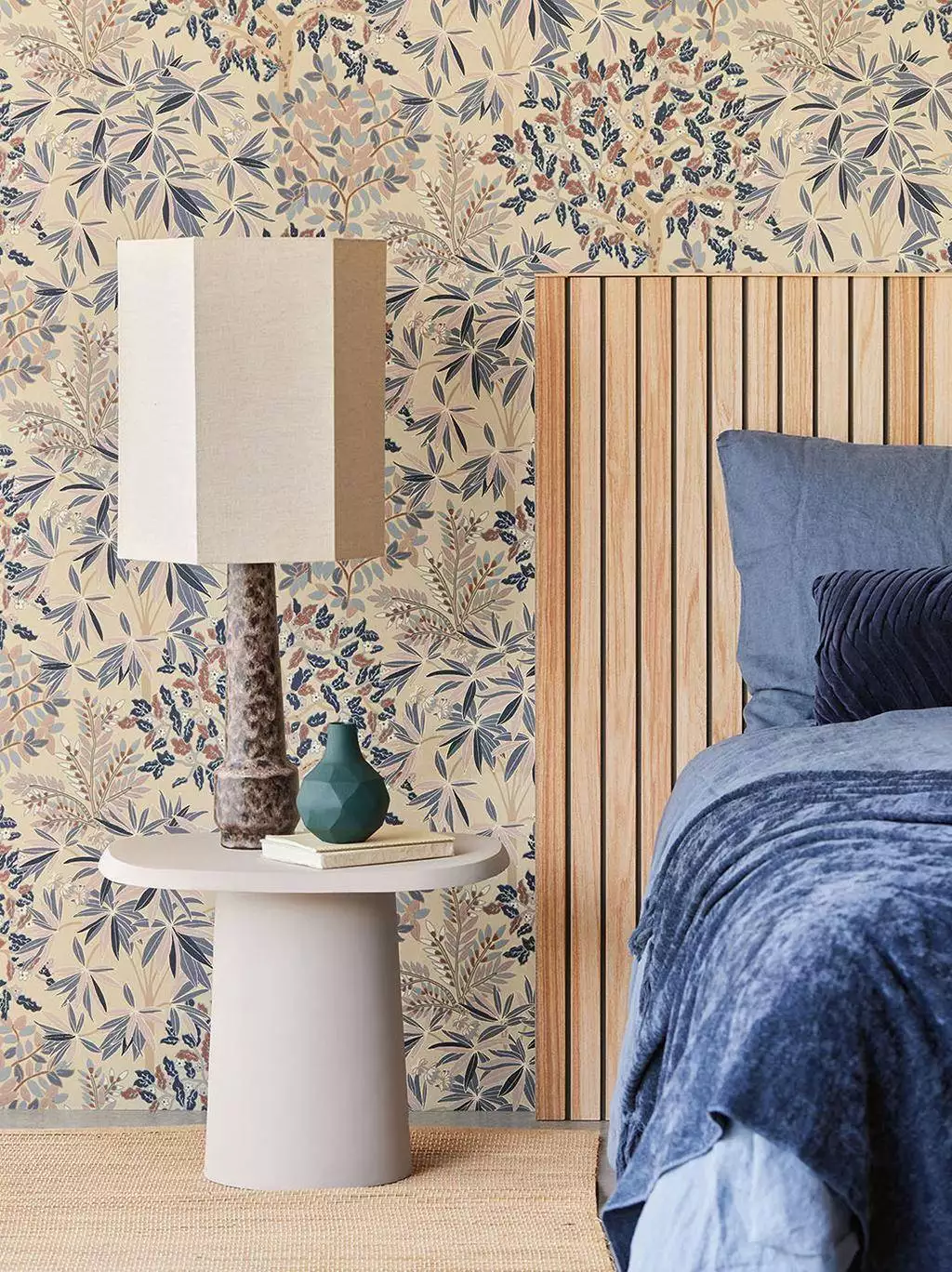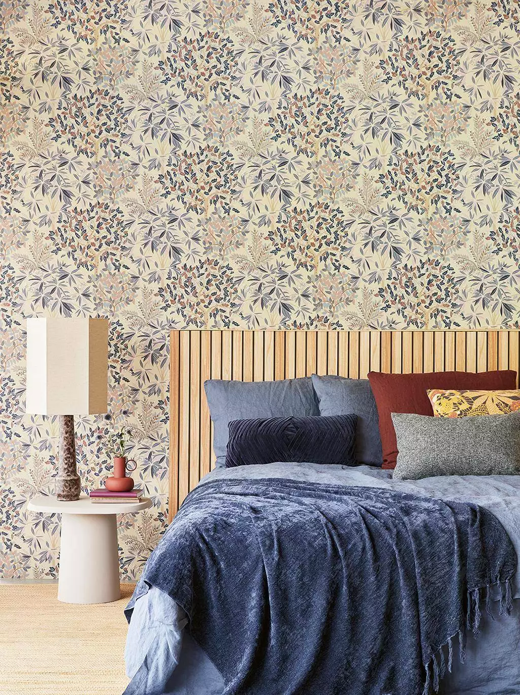 Die Tapete "Festival Bouquet of Flowers, col. 20" strahlt eine sanfte Eleganz aus. Mit filigranen Blättern und floralen Mustern in kühlen Blau- und warmen Beigetönen schafft sie eine harmonische Balance. Das dezente Design wirkt beruhigend und passt perfekt zu modernen oder skandinavischen Wohnräumen, die Natürlichkeit und Stil verbinden.