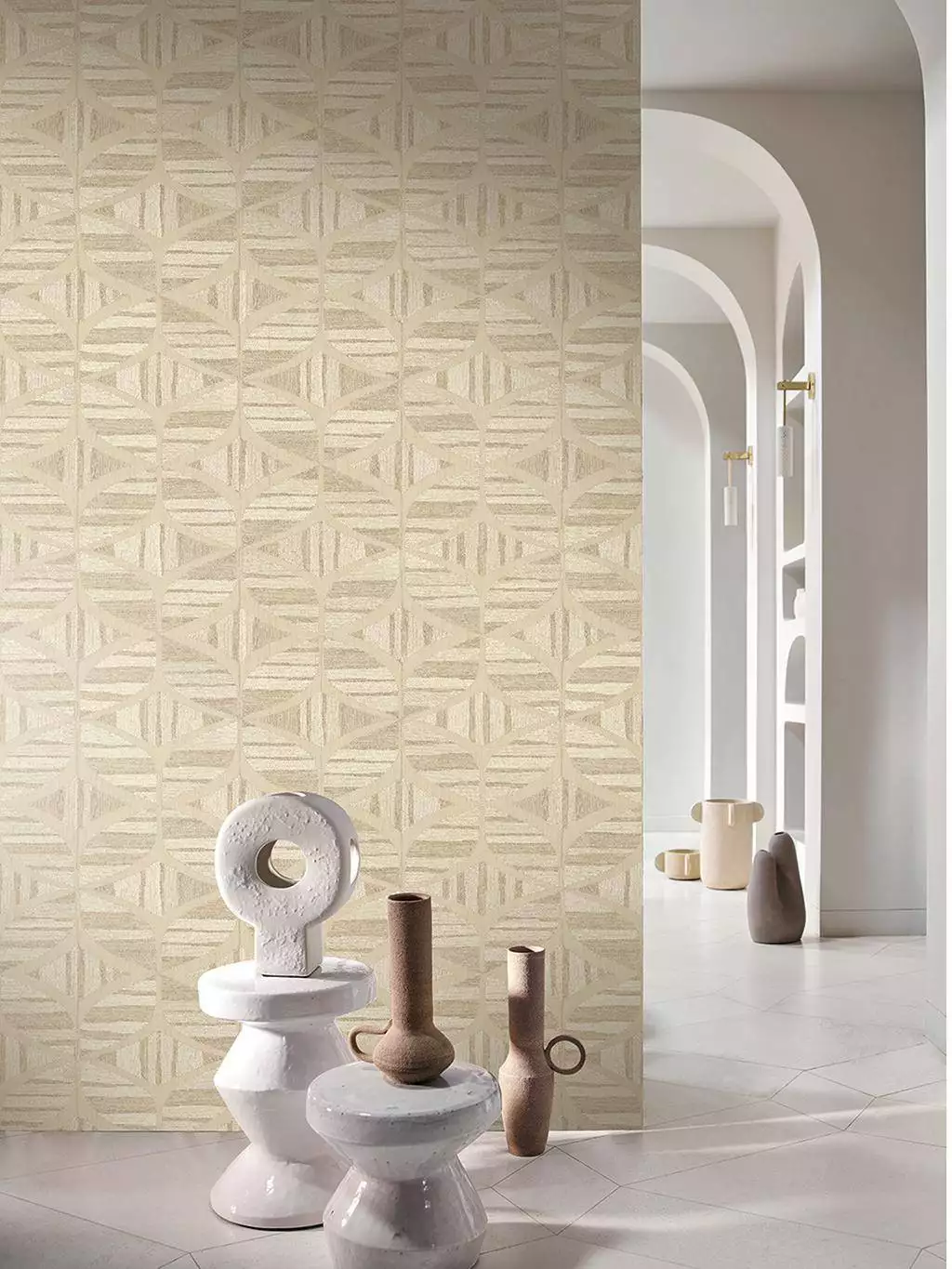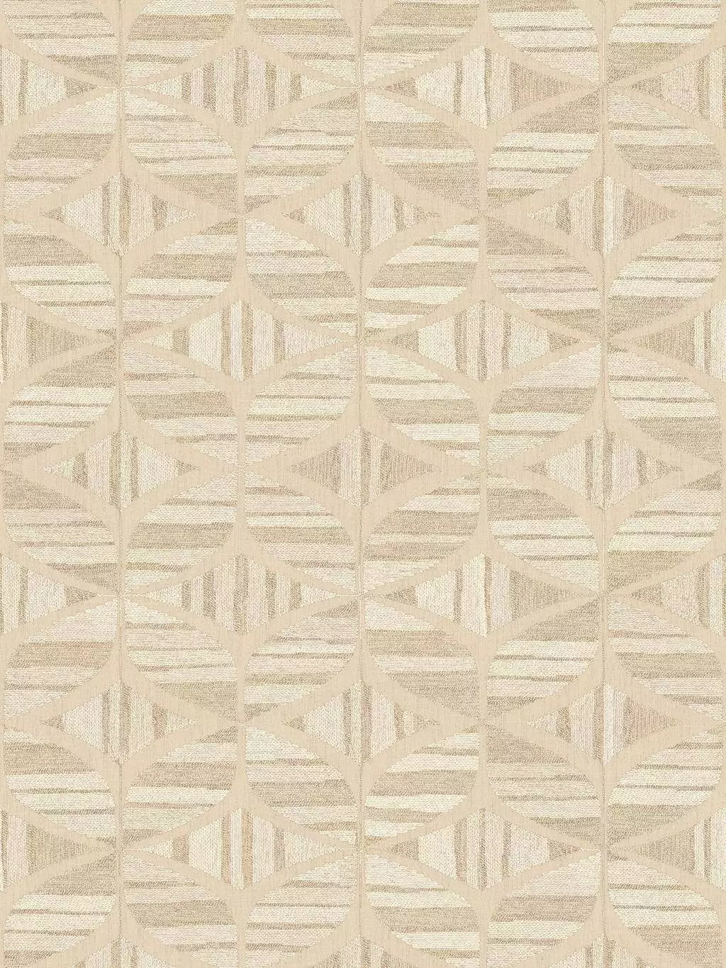 Die Tapete Filandra aus der Kollektion Broderies verbindet klare Geometrie mit textiler Anmutung. Erhabene Kreise und Rauten strukturieren wie Stick die Fläche, gefüllt mit fein abgestuften, gewebt wirkenden Reliefs. Die matte Vinyloberfläche verleiht Tiefe und eine präzise, belastbare Haptik. Warme Naturtöne sorgen für Ruhe und Ausgleich. Die Wand wirkt gefasst, dennoch weich. Eine Lösung für Wohn- und Objektbereiche, in denen Struktur, Beständigkeit und subtile Eleganz gefragt sind.