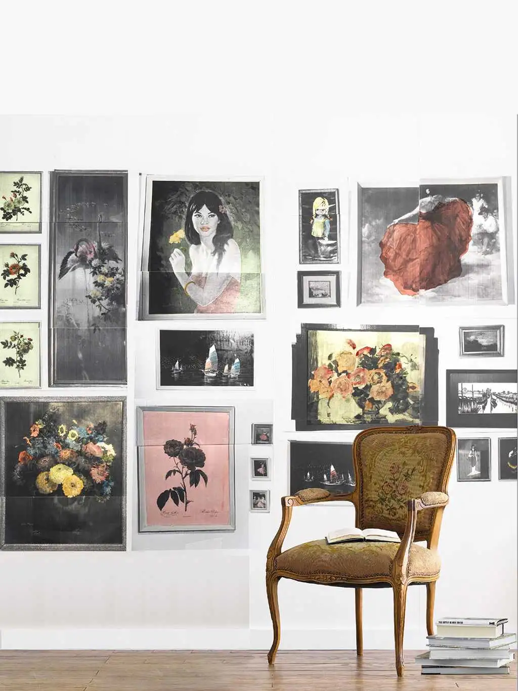 • Großformatige Muster, warme Farben und dezente Metallic-Effekte, die Tiefe und Eleganz schaffen