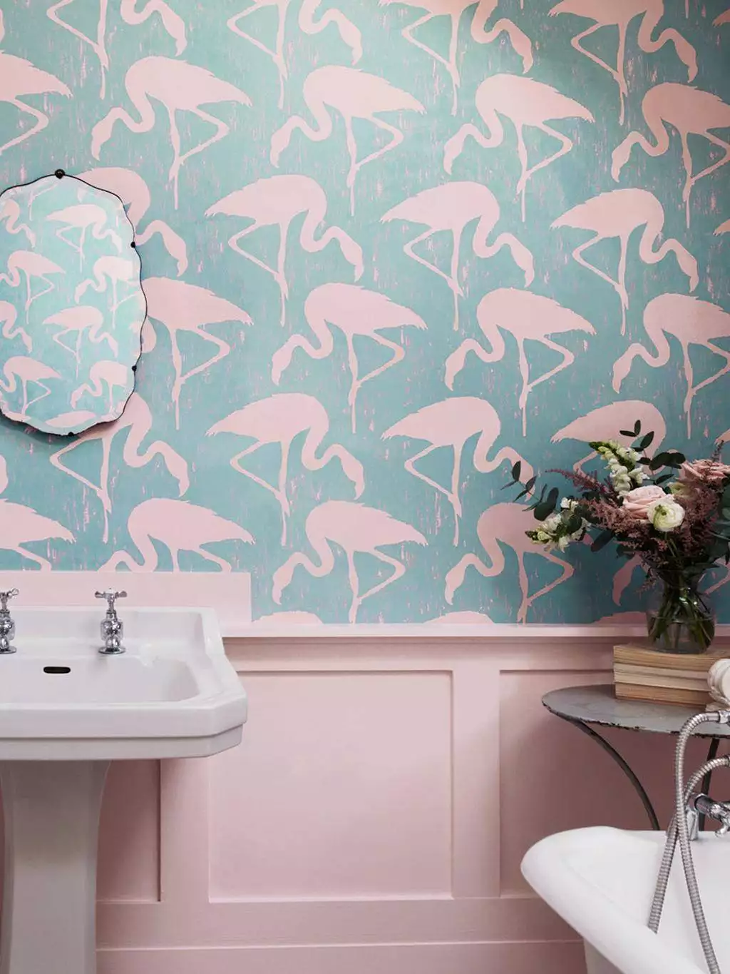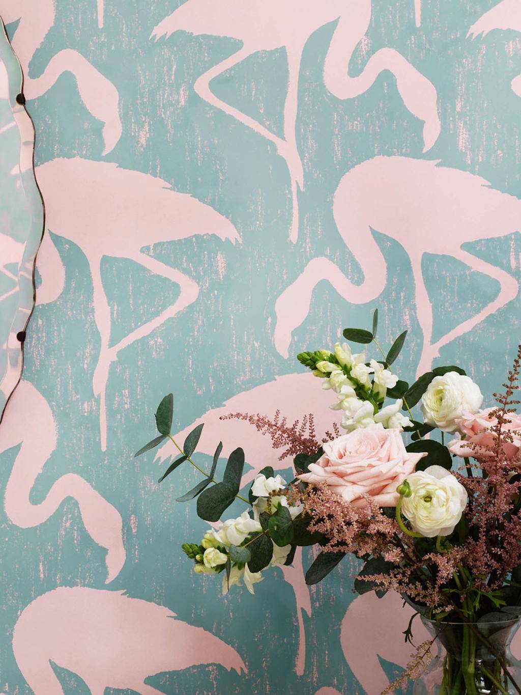Die Tapete Flamingos von Sanderson ist in turquoise / pink ein echter Blickfang! Das aktualisierte Warner-Archivdesign hat eine reichhaltige Oberfläche und sorgt in kleineren Räumen des Hauses für Gesprächsstoff und in größeren Räumen für einen auffälligen Akzent. Still und stilvoll verschmelzen die Silhouetten von Flamingos kreidig auf gebrochenem Bleu zu einem harmonischen Kunstwerk.