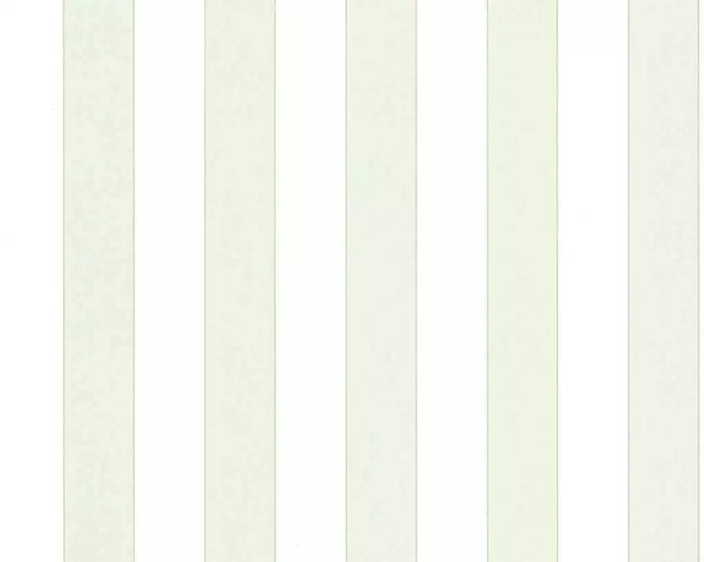 Die Tapete Florian, col. 02 zeigt einen klassischen Blockstreifen in Beige und Hellgrün, akzentuiert durch eine feine Goldlinie, die dem zeitlosen Design eine elegante Note verleiht.