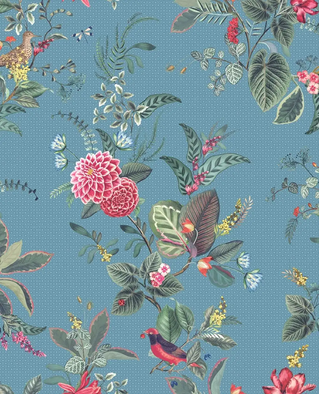 Die Romantiker unter Ihnen müssen jetzt stark sein, denn Sie werden sich sofort in diese zauberhafte Tapete verlieben, und nie wieder an etwas anderes denken können! Die Tapete Floris Flowers aus dem Pip Studio lässt das Herz eines jeden romantischen Menschen höherschlagen. Eine herrliche Blütenvielfalt in den schönsten Farben wirbelt in filigranem Zeichenstil über die Wand. Die Farbgestaltung erinnert an alte Gemälde, an mit floralen Stoffen überzogene dicke Wände von Schlössern der Renaissance oder des Barock. Zwischen den prachtvollen Blüten und Blättern schauen kleine Vögel hervor, deren Zwitschen man fast hören kann.