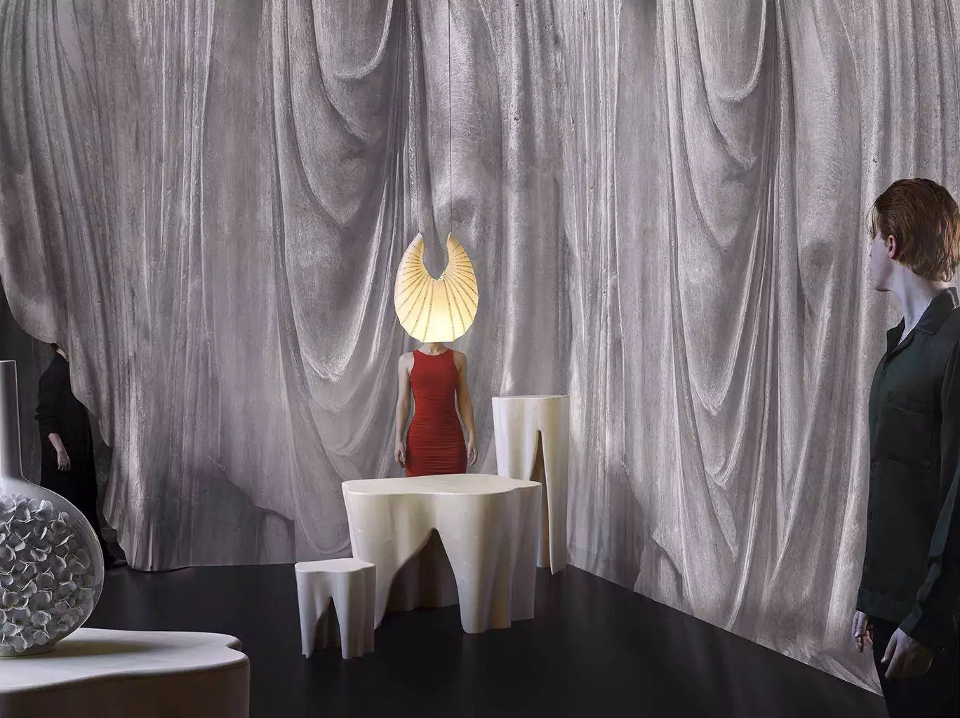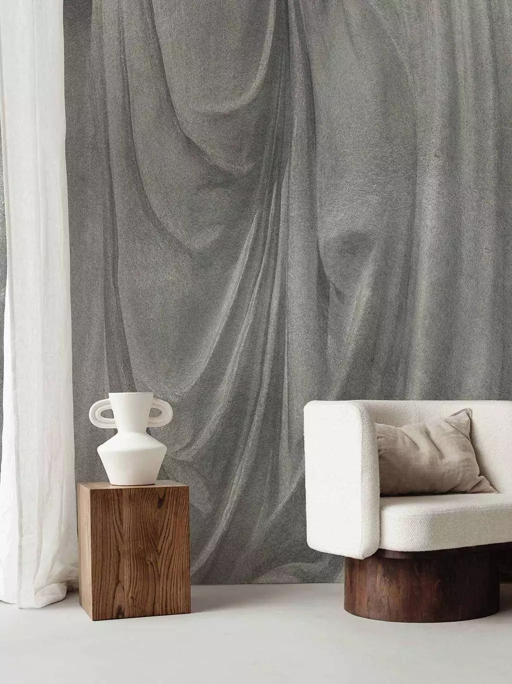 Die Tapete „Fold Silver“ aus der Kollektion Artisan von Bodo Sperlein verwandelt Wände in kunstvolle Inszenierungen, die an elegant drapierte Stoffbahnen erinnern. Die sanften Schattierungen und die realistische Struktur verleihen Räumen eine ruhige, fast meditative Tiefe, während das Silber den Eindruck von wertvollem Stein und fließendem Textil in einem erzeugt. Diese Tapete fügt sich harmonisch in zeitgemäße, minimalistische Interieurs ein und hebt das Ambiente auf eine luxuriöse Ebene, ohne dabei aufdringlich zu wirken. Jede Wand wird so zu einer einzigartigen Skulptur, die im Raum eine subtile, aber eindrucksvolle Präsenz entfaltet.