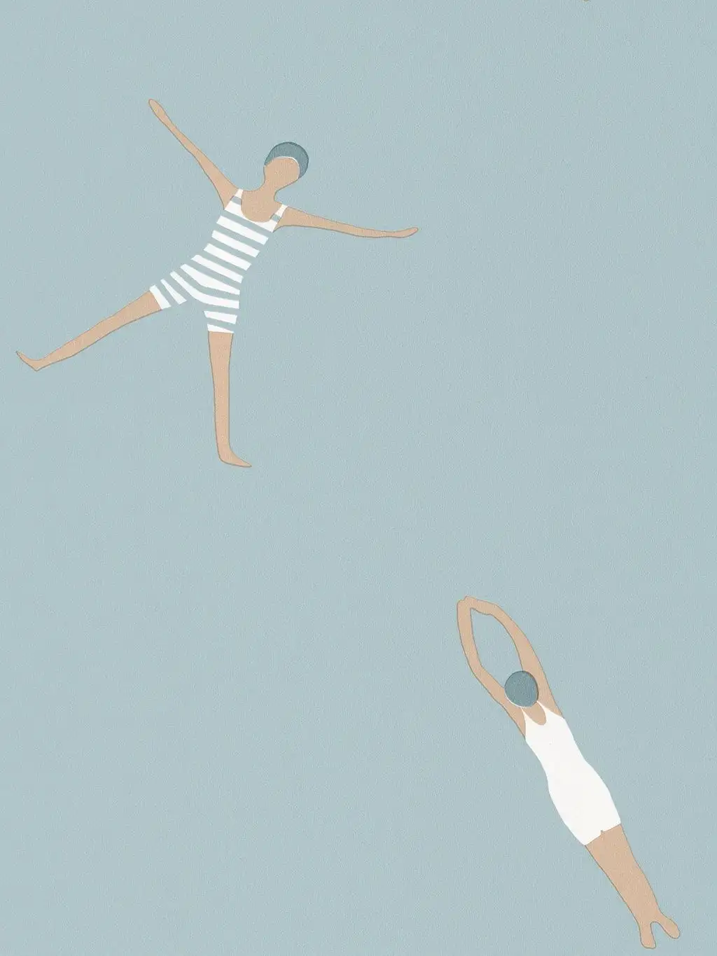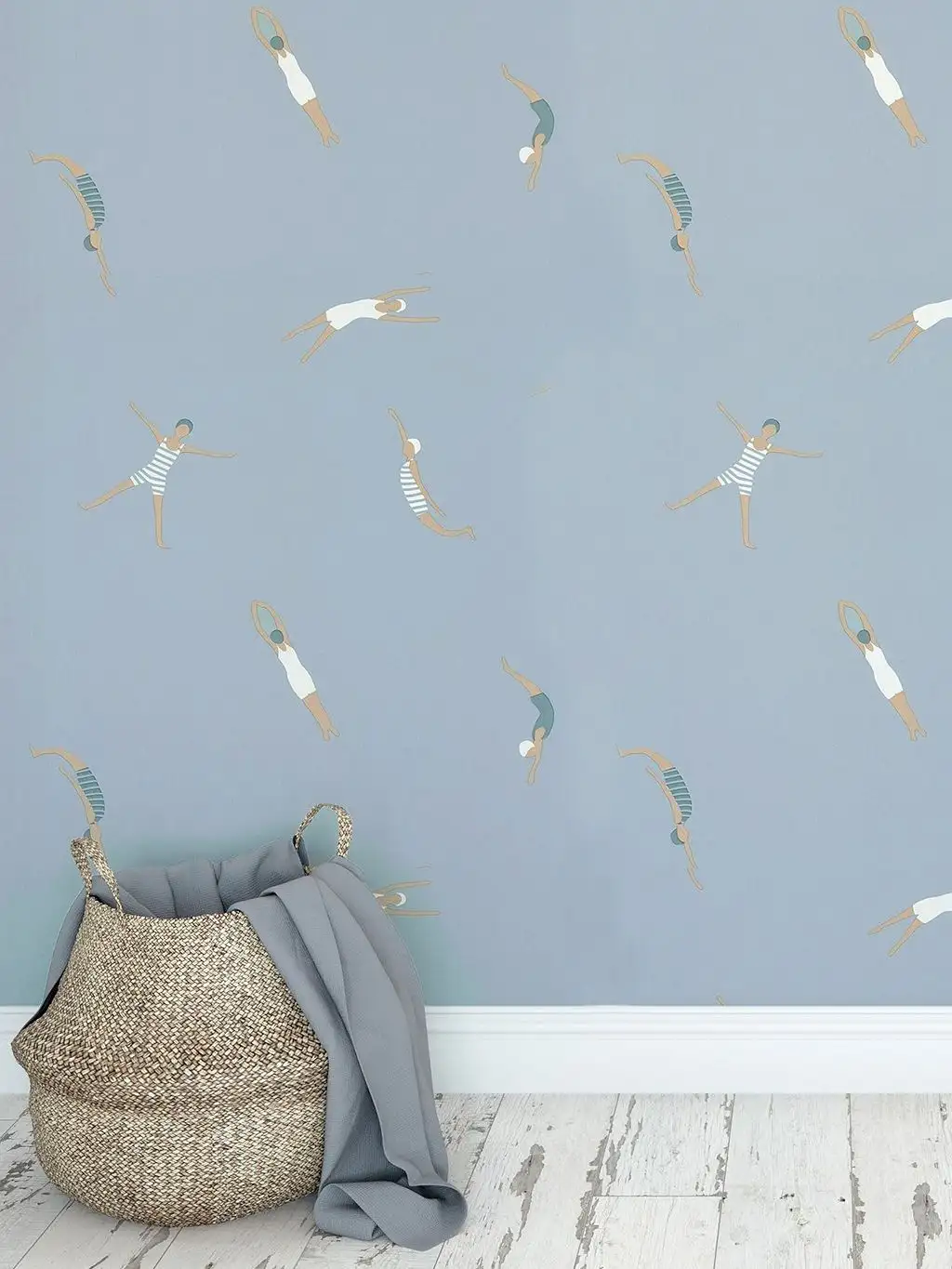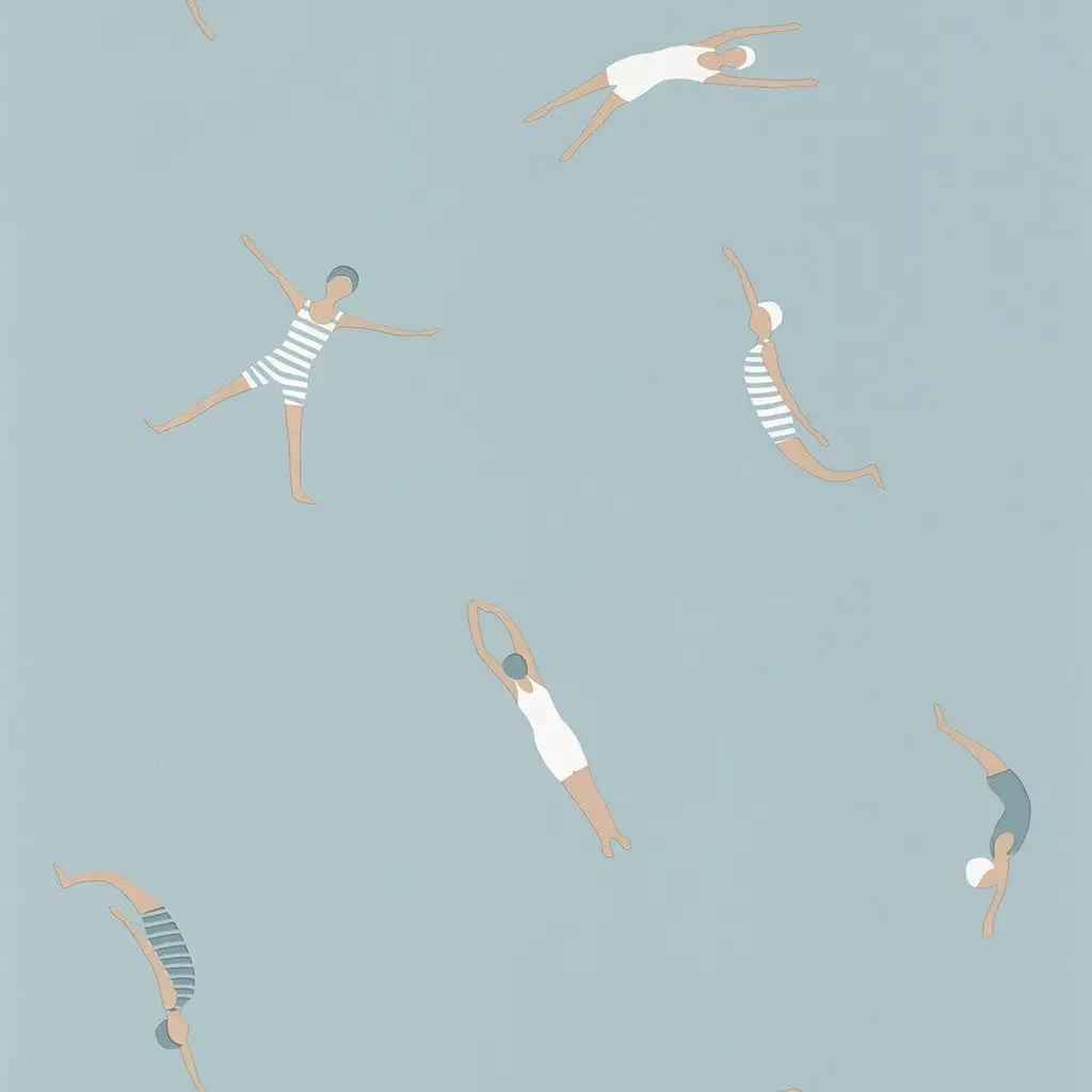 Machen Sie Ihr Badezimmer zu einem Ort der Freude und des Lächelns mit der Funny Swim Tapete! Diese einzigartige Tapete zeigt sympathisch gemalte Schwimmerinnen in klassischen Badeanzügen auf einem blauen Untergrund, die jeden Morgen zu einem fröhlichen Erlebnis machen werden.