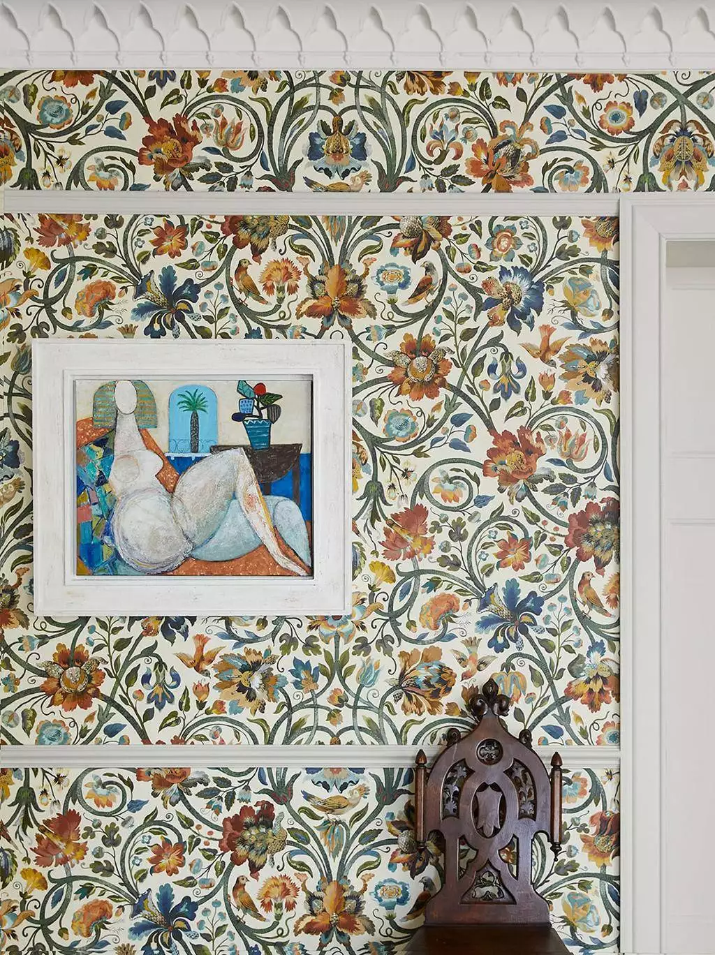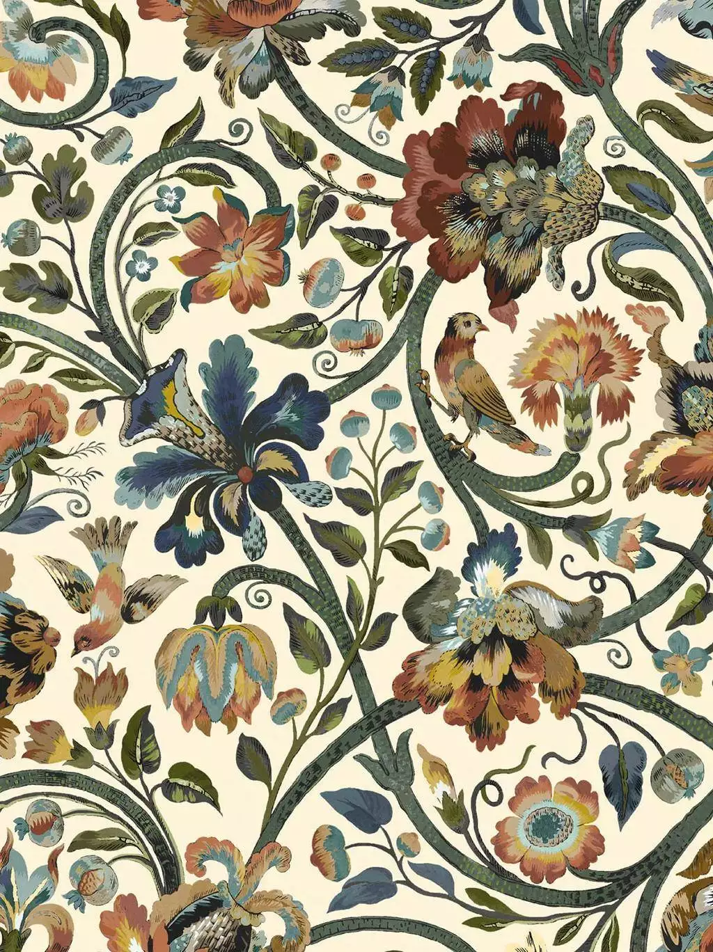 Die Gaia Wallpaper in Ecru von House of Hackney ist eine Hommage an die Natur, benannt nach der Erdgöttin Gaia aus der griechischen Mythologie. Dieses florale Design im Stil der Arts-and-Crafts-Bewegung zeigt große Blüten, Vögel und Beeren, die sich an verschlungenen Ranken entlangziehen. Der sanfte Ecru-Hintergrund hebt die warmen, erdigen Töne der Pflanzen- und Tiermotive besonders hervor und verleiht jedem Raum eine elegante, zugleich verspielte Atmosphäre.