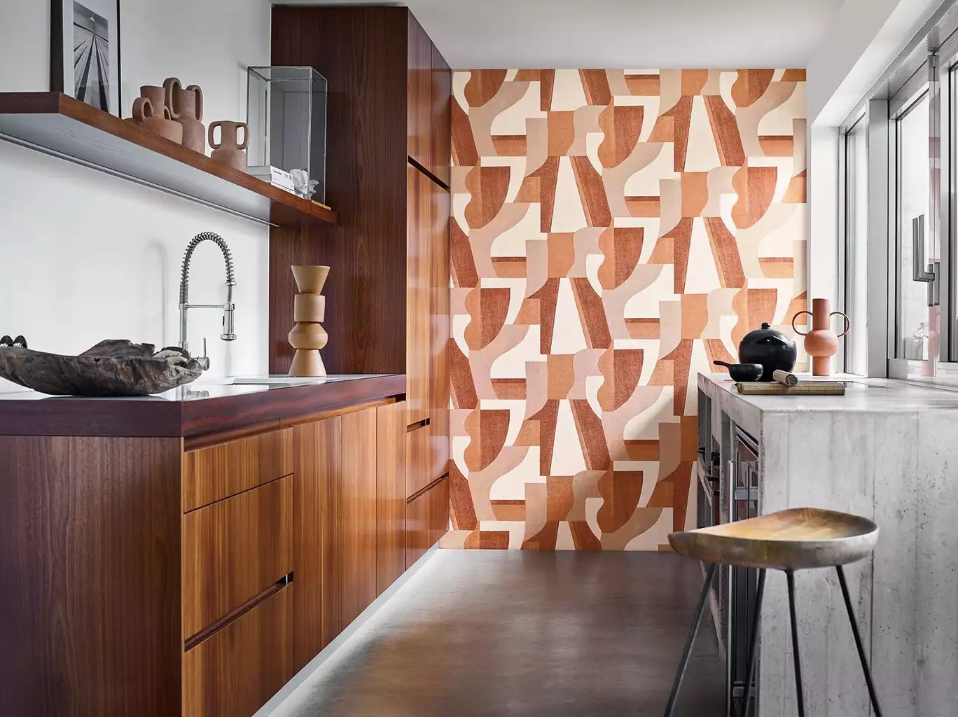 • Großformatige Muster, warme Farben und dezente Metallic-Effekte, die Tiefe und Eleganz schaffen