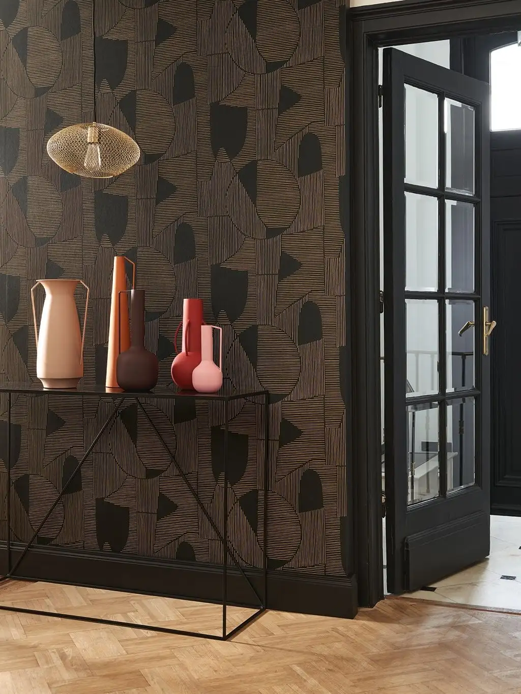 • Großformatige Muster, warme Farben und dezente Metallic-Effekte, die Tiefe und Eleganz schaffen
