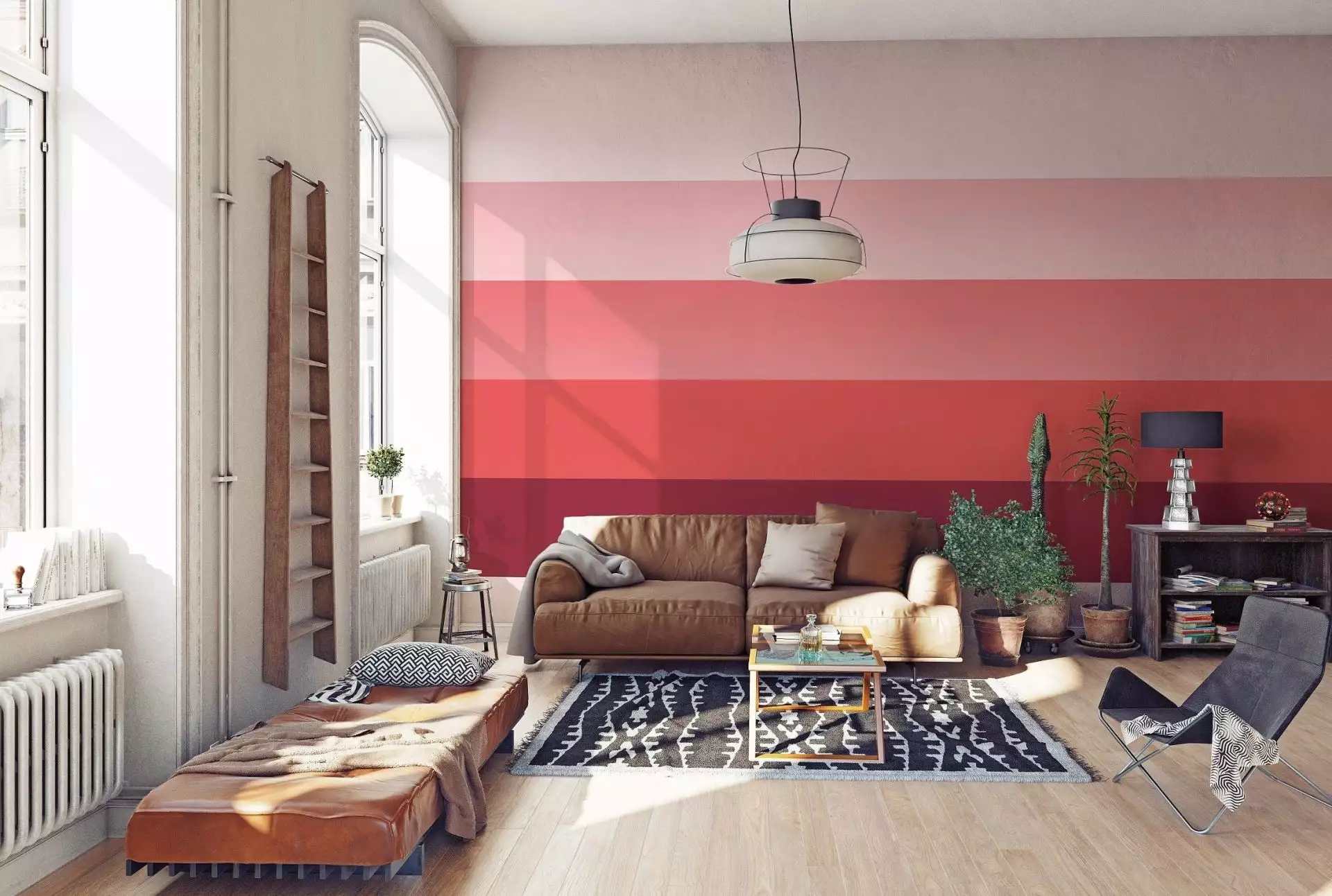Für eine bessere optische Raumwirkung ist der oberste und hellste Streifen 70 Zentimeter breit, die anderen haben jeweils eine Breite von 50 Zentimetern. Durch das nach oben hin immer heller werden Farbschema bekommt Ihr Raum eine ganz besondere Tiefenwirkung. Vor allem in der Küche, kombiniert mit Haushaltsgeräten und Küchenutensilien aus Edelstahl und Bambus wird diese Tapete zu einem echten Highlight!