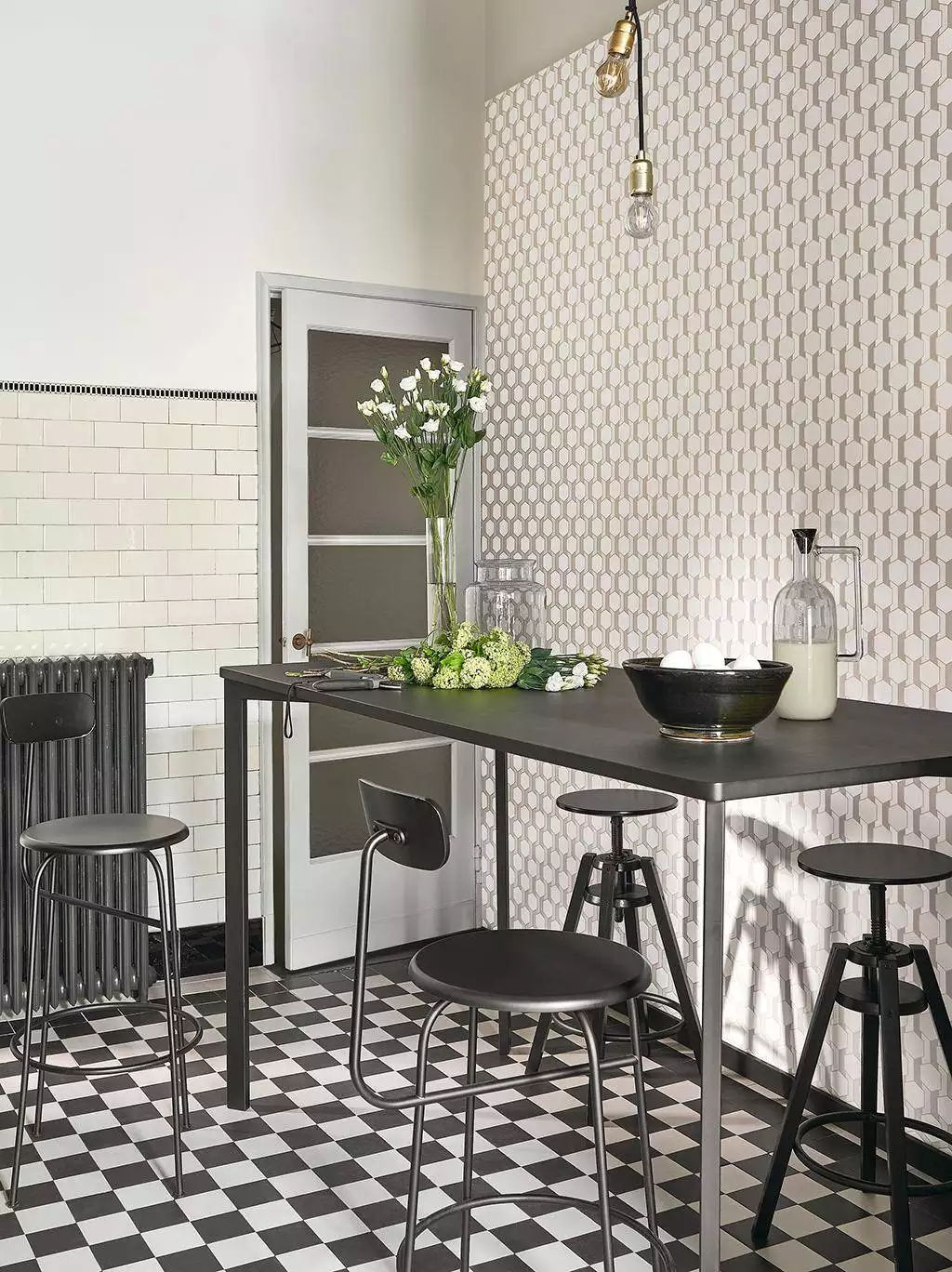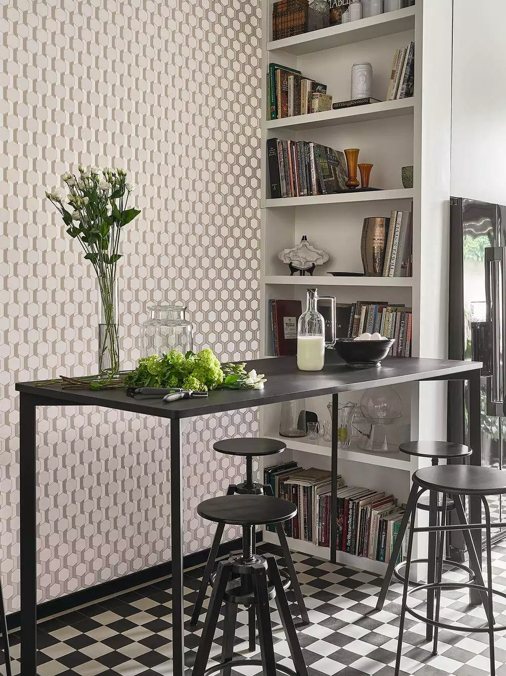 Die elegante Tapete Hamilton von Casadeco besticht durch ein grafisches Hexagon-Muster in den Farben Creme, Gold und Silbergrau. Das Wabenmuster bringt eine charmante Strenge mit sich, dazu eine Prise moderner Raffinesse, kunstvoll und in stimmigen Farben kombiniert. Das Design Hamilton ist in vier verschiedenen Farben erhältlich.
