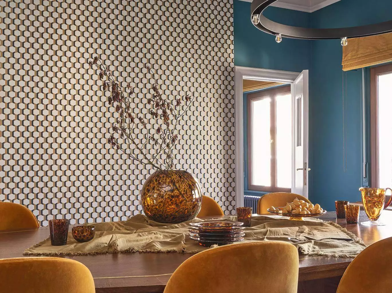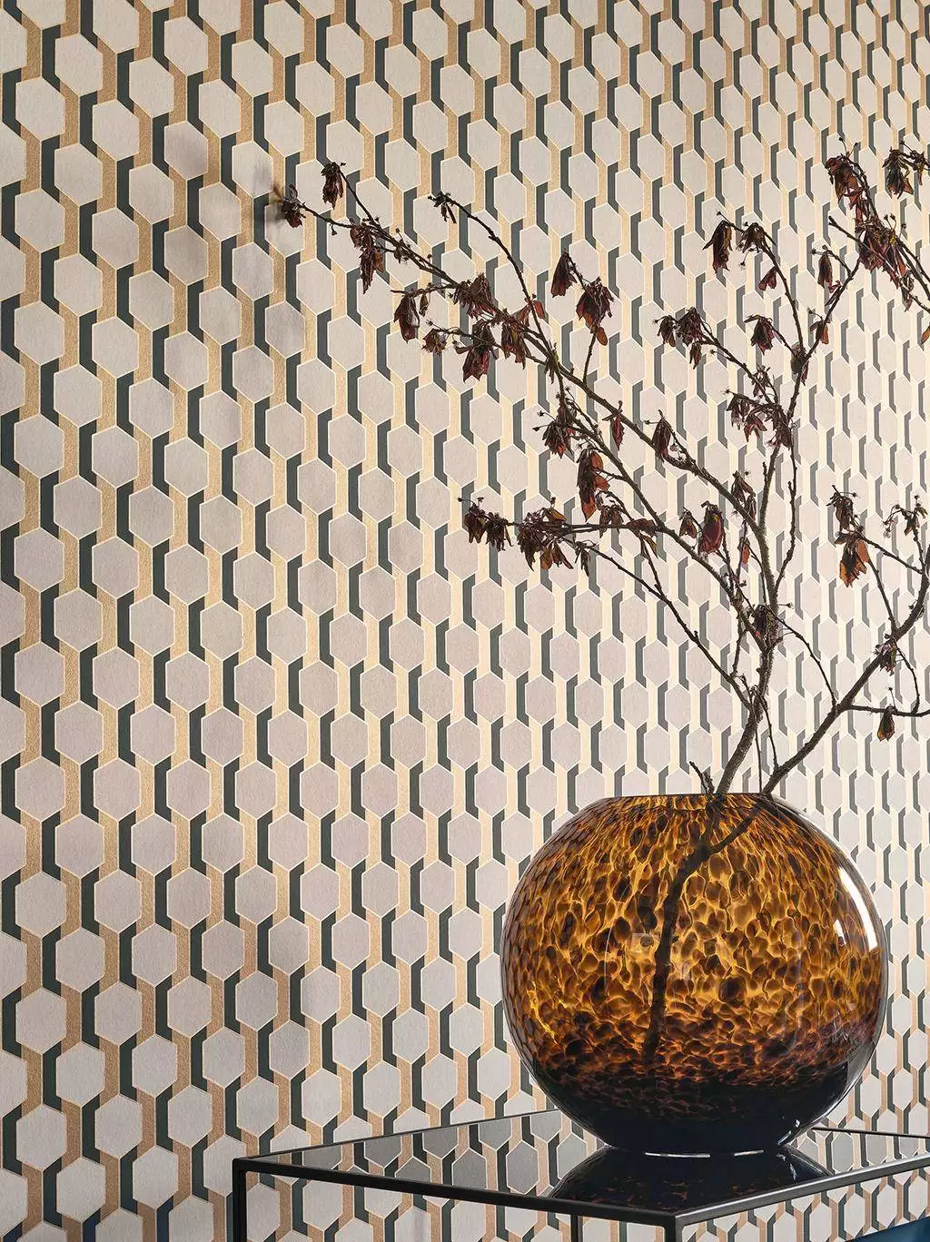 Tauchen Sie ein in die zeitlose Eleganz der Tapete Hamilton! Mit ihrem grafischen Hexagon Muster in den Farben Gold, Schwarz und Weiß verleiht sie jedem Raum eine edle Note. Das Wabenmuster betont die Wand mit einer charmanten Strenge und verleiht gleichzeitig eine Prise moderner Raffinesse. Die Tapete Hamilton ist mehr als nur Wandverkleidung - sie ist ein Statement für Stil und Klasse.