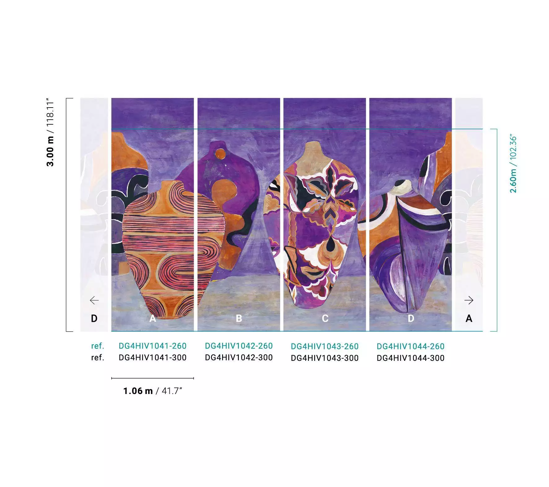 Das Gesamtmotiv besteht aus 4 unterschiedlichen Bahnen/Artikel - Hiva Peru, col. 01, Hiva Peru, col. 02, Hiva Peru, col. 03, Hiva Peru, col. 04