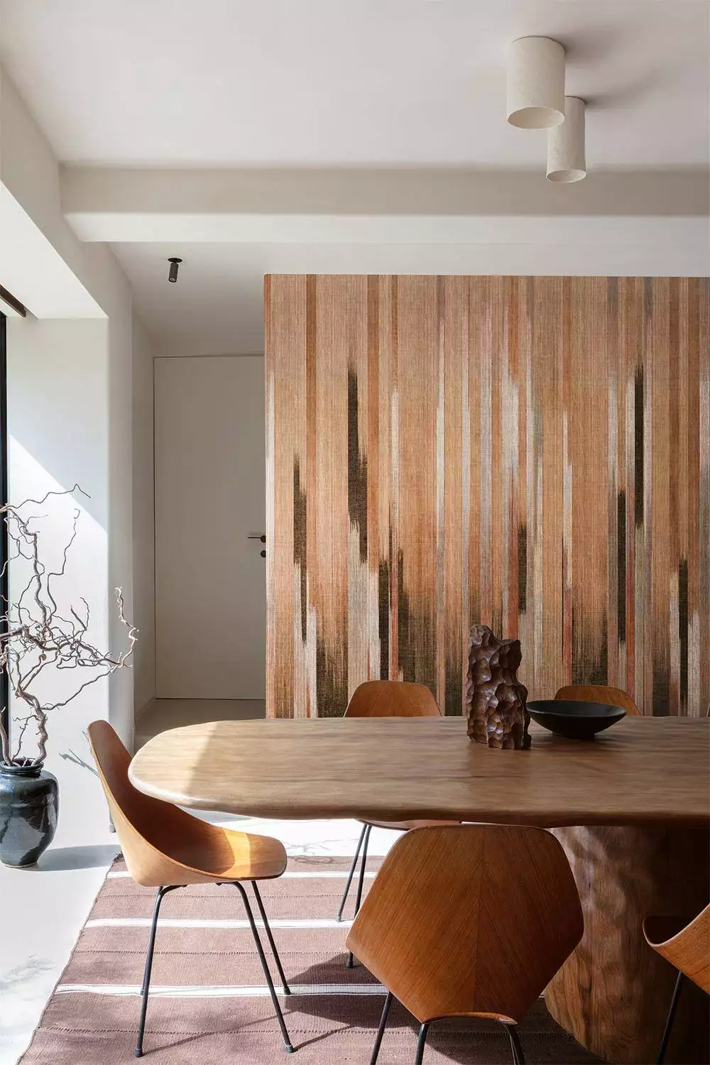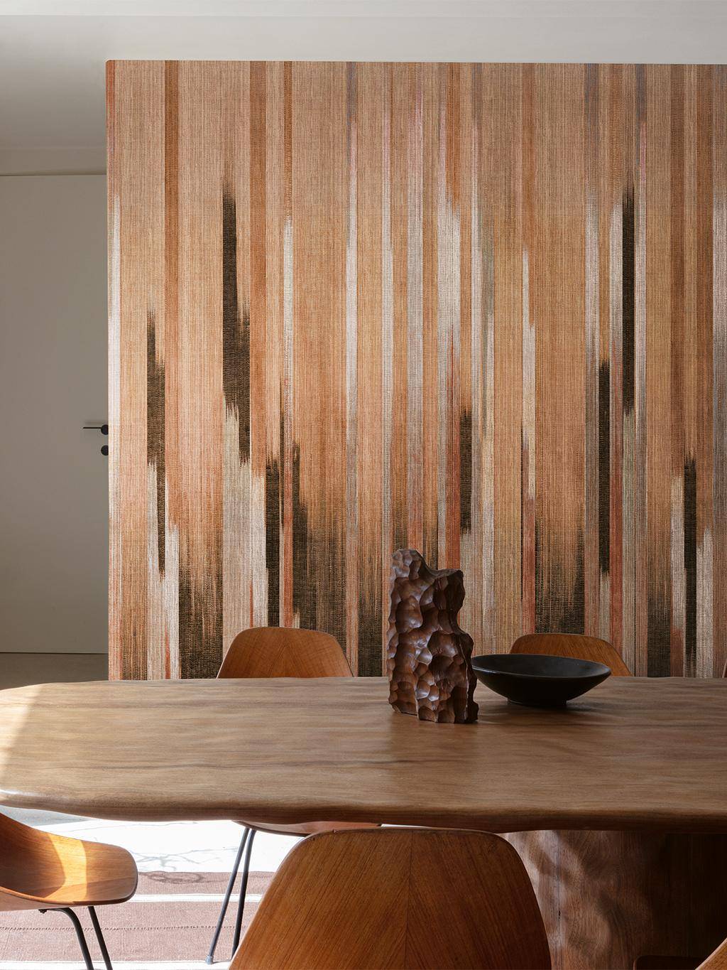 Die Tapete Holi Mocca erinnert an die Schönheit handgewebter Seiden-Ikat-Stoffe. Das Muster wirkt wie ein traditionelles Textil, das in ein geräumiges Wandmotiv übertragen wurde. Die Farben spielen lebendig miteinander und bringen Energie in den Raum. Das Design würdigt Holi – das Festival der Farben in Indien. Sie steht für Freude, Bewegung und kreative Freiheit. Jeder Farbton wirkt bewusst gesetzt, jeder Verlauf erzählt von Handwerk und kultureller Tiefe. Die Leinenstruktur füllt das Motiv mit Wärme und natürlicher Haptik. Sie macht die Oberfläche lebendig und gibt dem Raum ein Gefühl von leichter, moderner Vielfalt. Holi Lime verwandelt Wände in einen Blickfang voller Lebenslust und künstlerischer Strahlkraft.