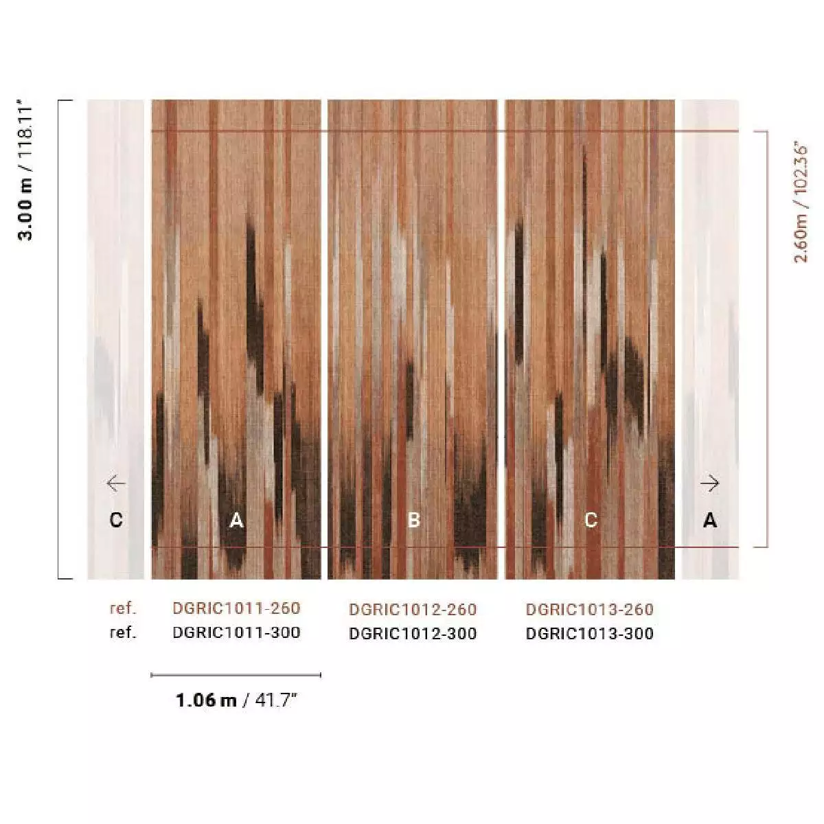 Das Motiv besteht aus 3 Bahnen (= Set 1, 2 und 3), die beliebig oft wiederholt an die Wand gebracht werden können. Je nach Breite der Wand benötigen Sie Set 1 (Art.1031 = 1,06 m) + Set 2 (Art.1032 = 1,06 m) + Set 3 (Art.1033 = 1,06 m) + .... - bitte teilen Sie uns bei Ihrer Bestellung im Kommentarfeld die Breite Ihrer Wand und die gewünschte Anzahl der Bahnen mit. Wir helfen Ihnen gerne bei der Berechnung. Die Panels sind ebenfalls in 3,00 m Höhe erhältlich. Sprechen Sie uns an.