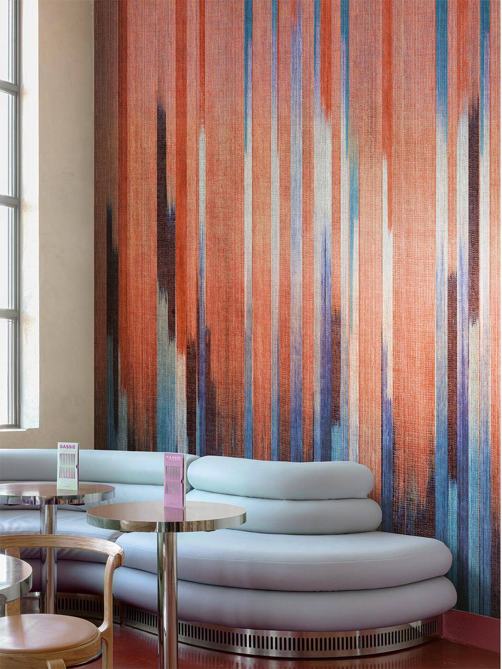 Die Tapete Holi Sunset erinnert an die Schönheit handgewebter Seiden-Ikat-Stoffe. Das Muster wirkt wie ein traditionelles Textil, das in ein geräumiges Wandmotiv übertragen wurde. Die Farben spielen lebendig miteinander und bringen Energie in den Raum. Das Design würdigt Holi – das Festival der Farben in Indien. Sie steht für Freude, Bewegung und kreative Freiheit. Jeder Farbton wirkt bewusst gesetzt, jeder Verlauf erzählt von Handwerk und kultureller Tiefe. Die Leinenstruktur füllt das Motiv mit Wärme und natürlicher Haptik. Sie macht die Oberfläche lebendig und gibt dem Raum ein Gefühl von leichter, moderner Vielfalt. Holi Lime verwandelt Wände in einen Blickfang voller Lebenslust und künstlerischer Strahlkraft.