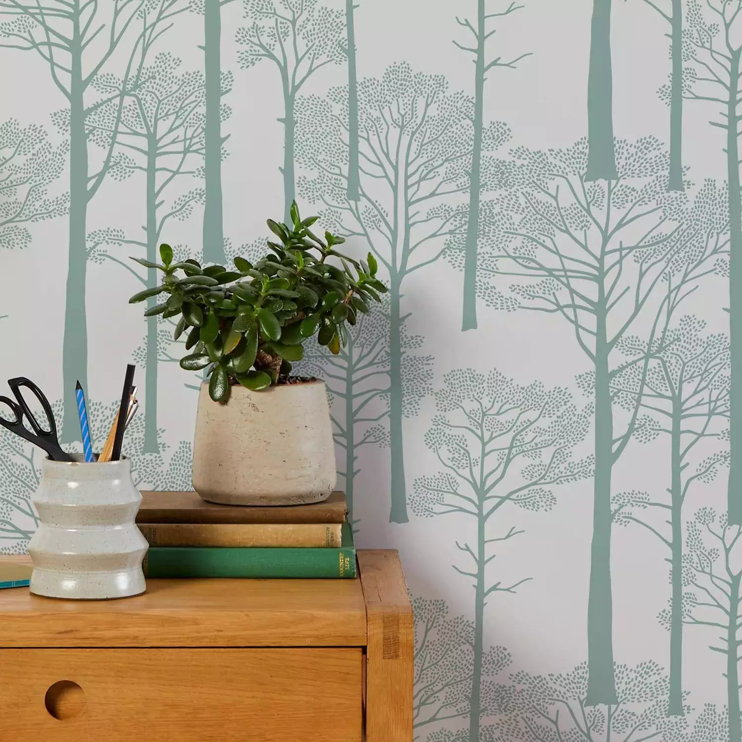 Die Tapete Holkham Pines in Seafoam Green bringt die Ruhe eines stillen Waldes in weichen, kühlen Tönen an die Wand. Zarte Kiefernstrukturen in sanftem Grün ziehen sich gleichmäßig über einen hellen, fast pudrigen Hintergrund. Die feinen Linien der Baumkronen und die klare Vertikalität der Stämme wirken luftig und zugleich geerdet. Das Design strahlt Leichtigkeit und Balance aus – wie ein Morgenspaziergang durch lichtdurchflutete Baumwipfel, wo alles klar, frisch und offen erscheint. Handgezeichnet im Bold & Noble Studio in Hertfordshire und gedruckt in Lancashire in einer der letzten noch existierenden Tapetenfabriken Großbritanniens. Diese Qualitätstapete wird mit Farben auf Wasserbasis auf flammhemmendes PEFC-Papier gedruckt.