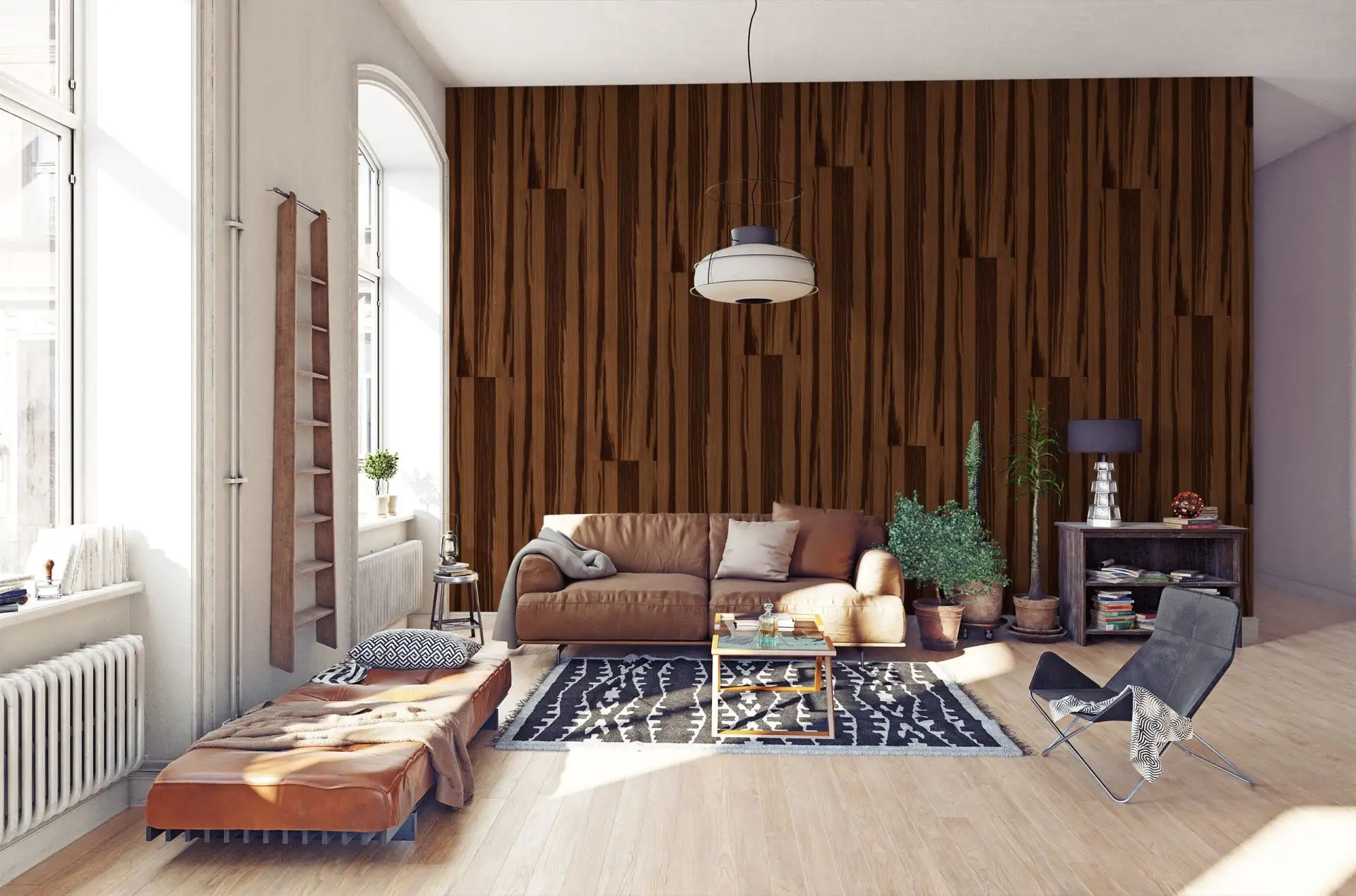 Die Holz-Vlies-Tapete ist sehr einfach zu verarbeiten und vermittelt ein natürliches Raumgefühl.