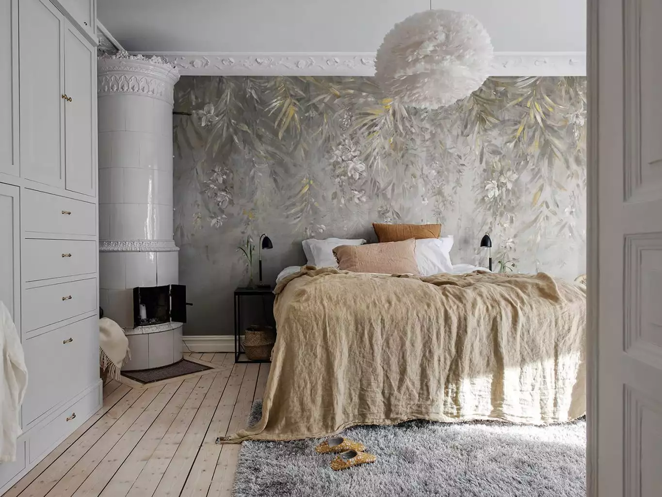 • Großformatige Muster, warme Farben und dezente Metallic-Effekte, die Tiefe und Eleganz schaffen