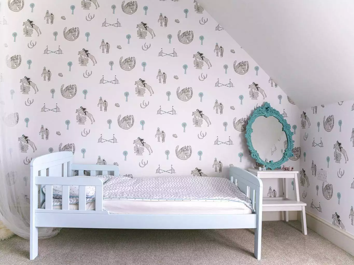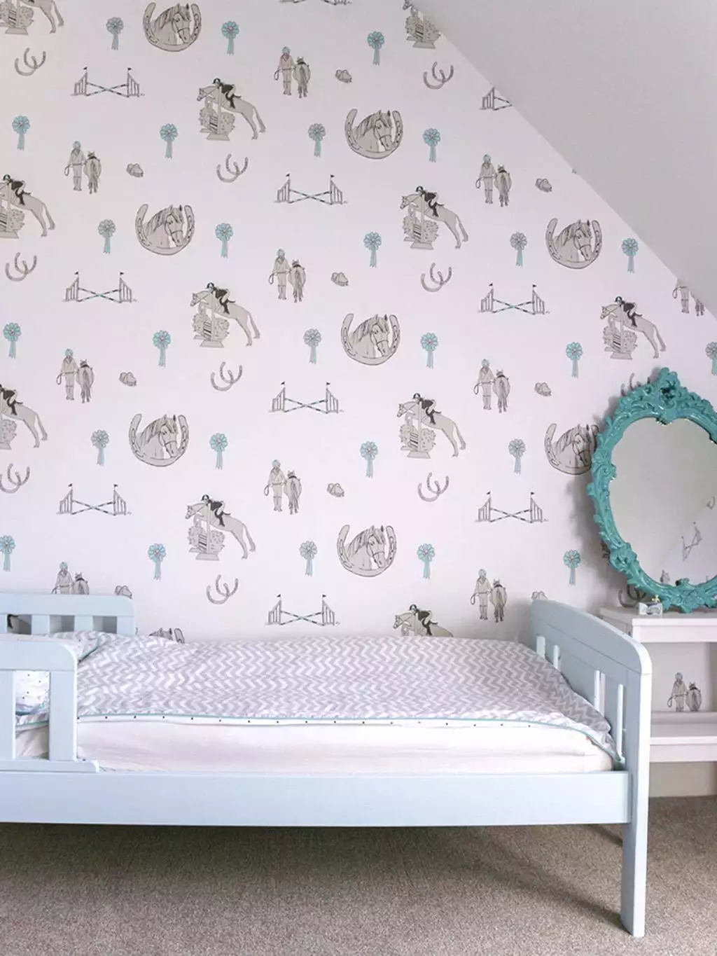Horse Tales ist der Traum jedes Pferde- und Ponyliebhabers. Diese liebevoll gestaltete Tapete mit niedlichen Ponys, Schleifen und Sprüngen beflügelt Kinder, ihre eigenen Geschichten zu erfinden. Das Muster wurde sorgfältig entworfen, damit sich kleine Reiter mit den Bildern identifizieren und die besondere Beziehung zwischen Pony und Reiter nachempfinden können. Diese wunderschöne Tapete eignet sich perfekt für Schlafzimmer und Spielzimmer, aber auch für Garderoben und Schuhräume!