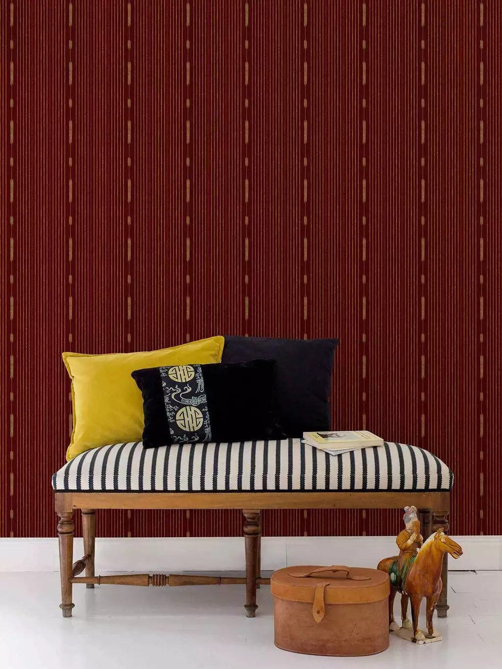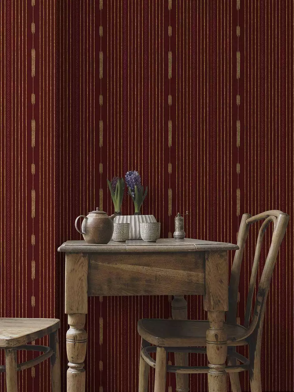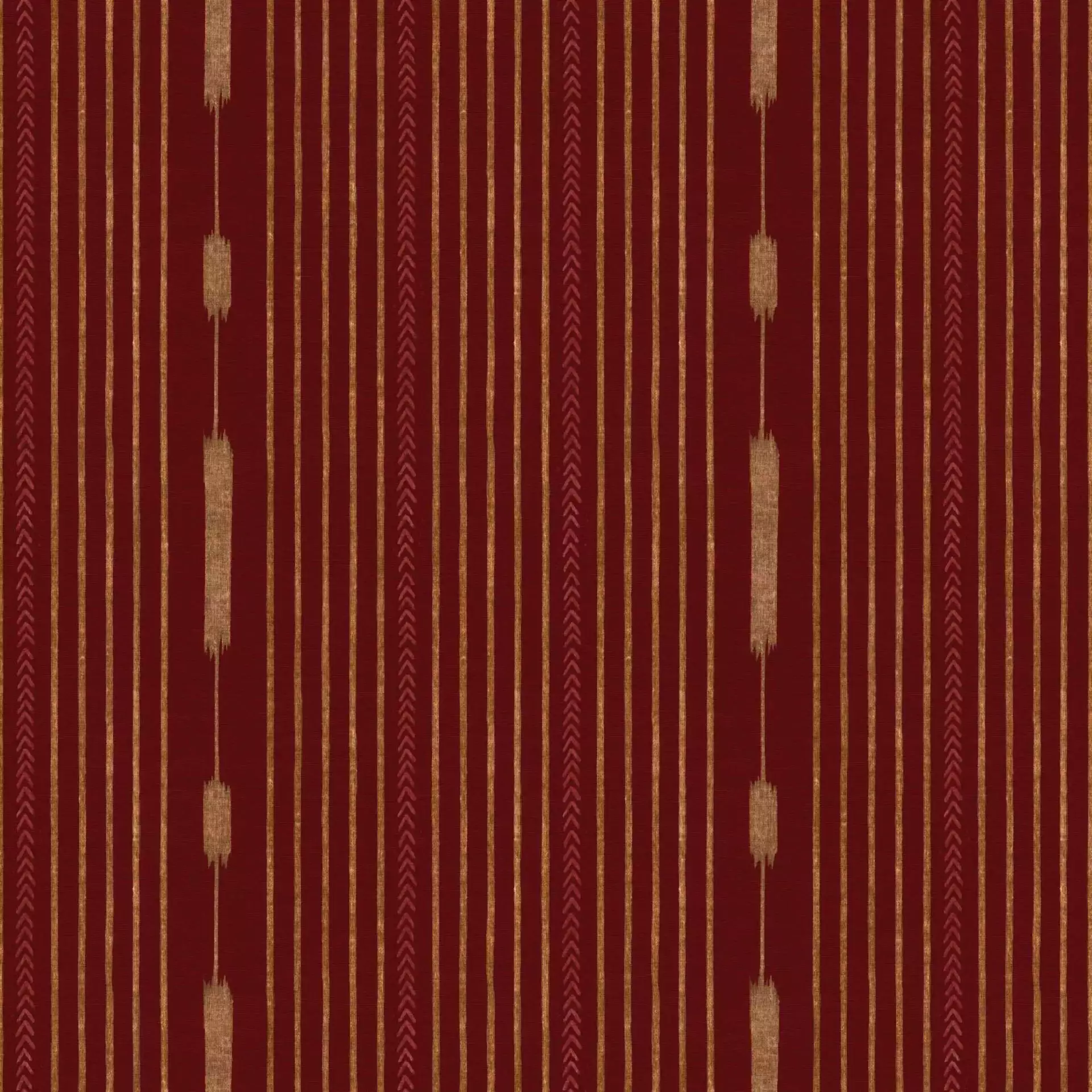 Die Streifentapete Huipil Wine von Coordonné erzählt von den Wurzeln der Maya-Kultur. Gebrochene Streifen in Creme ruhen auf warmem, burgund-rotem Grund. Vertikal verlaufendes Fischgrät in gebrochenem Rot und gestreute Ähren in Creme lockern das statische Muster auf. Freundlich und hintergründig bringt dieses Design Streifen mal anders an die Wand. Dieses Tapetedesign ist inspiriert durch die farbige Kleidung indigener Frauen Mittelamerikas namens Huipil.