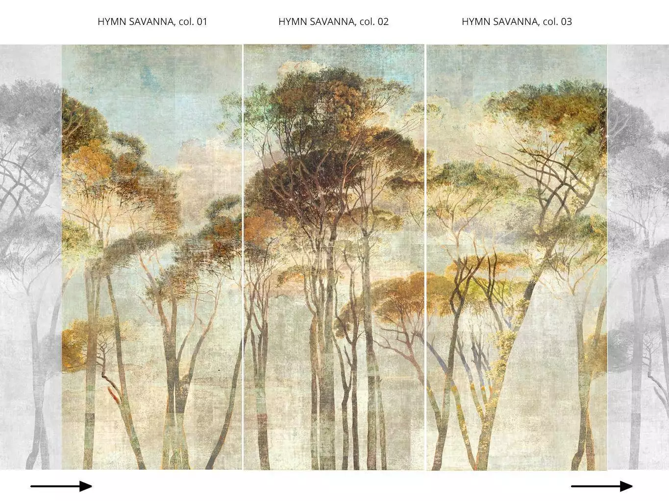 Die Tapete Hymn Savanna hüllt Räume in sonniges Licht und schafft einen Akzent der Entspannung. Pinien wecken die Assoziation von Urlaub und Erholung. Die Darstellung der Bäume auf dieser Tapete ist leicht verwaschen und lässt sie daher wie ein Traumbild oder eine Erinnerung wirken. In sonnigen aber zurückhaltenden Farben und auf verschwommenem Hintergrund, ähnlich einer alten Fotografie, verzaubert diese Tapete im Botanik Trend den Betrachter und hüllt Räume in eine harmonisierende Atmosphäre. Hervorragend geeignet für Schlafzimmer oder auch Warteräume in Arztpraxen oder Aufenthaltsräume in Krankenhäusern. Die Tapete "Hymn Savanna" gibt es in insgesamt drei verschiedenen Varianten (Bahn 1, Bahn 2, Bahn 3). In den Raumbildern bilden ggf. mehrere Bahnen verschiedener Artikel das Motiv (zu finden in Varianten).