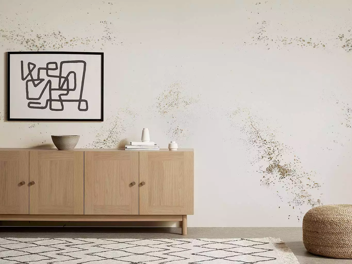 Igneous ist ein Design, das aus Kohlenstoffpulver hergestellt wird und durch Custhoms innovatives Verfahren der Handfolierung von Tapeten ein einzigartiges, gealtertes Finish in verschiedenen Metallic-Farbtönen erzeugt. Das Design imitiert die Kristallisation von Eruptivgestein, welches durch das Abkühlen und Erstarren von Magma oder Lava entsteht. Die metallischen Flecken sind ein zufälliges Muster, das sich nicht über die gesamte Länge der Tapete wiederholt. Empfehlung: Din A4 Muster bestellen!!!