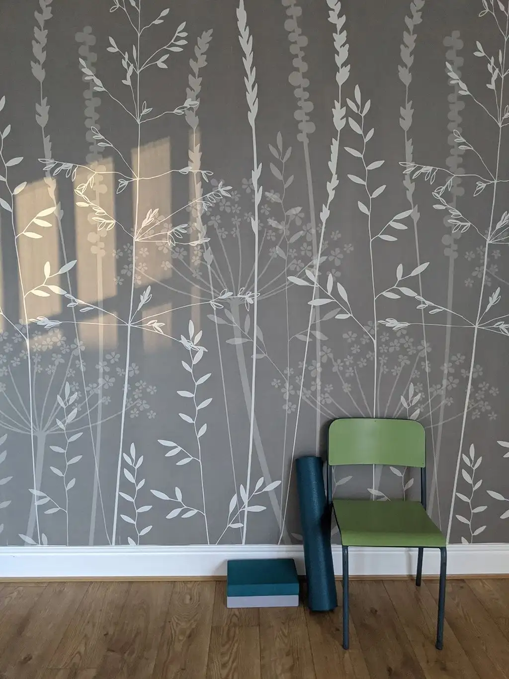 Eine Rolle hat drei Bahnen, die jeweils mit „Bahn A“, „Bahn B“ und „Bahn C“ gekennzeichnet sind und der Reihe nach aufgehängt werden müssen. Eine Bahn ist 330 cm hoch und 52 cm breit. Das Design kann ganz einfach oben oder unten zugeschnitten werden, um es an die Höhe Ihrer Wand anzupassen.